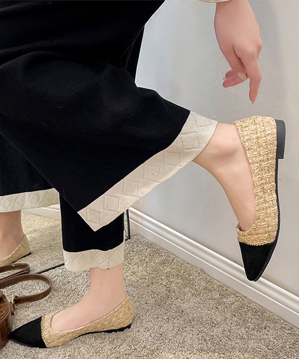 ポインテッドトゥパンプス ローヒール 痛くないぺたんこパンプス 歩きやすい 走れる配色パンプス 脱げない プチプラ婦人靴