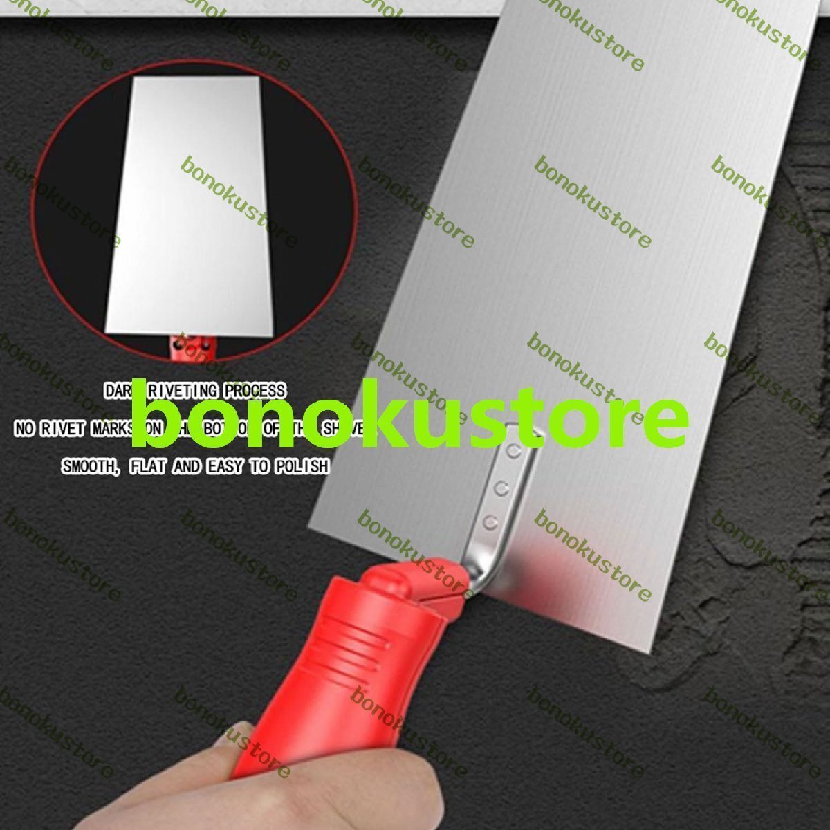 安定性: このセメントこてのスチールブレードは、高品質のアルミニウム製の頑丈なブレードでハンドルに固定され、ブレードの表面に沿って完全にリベット留めされています。ハンドスパチュラを曲げたり破損したりするのを防ぎます。