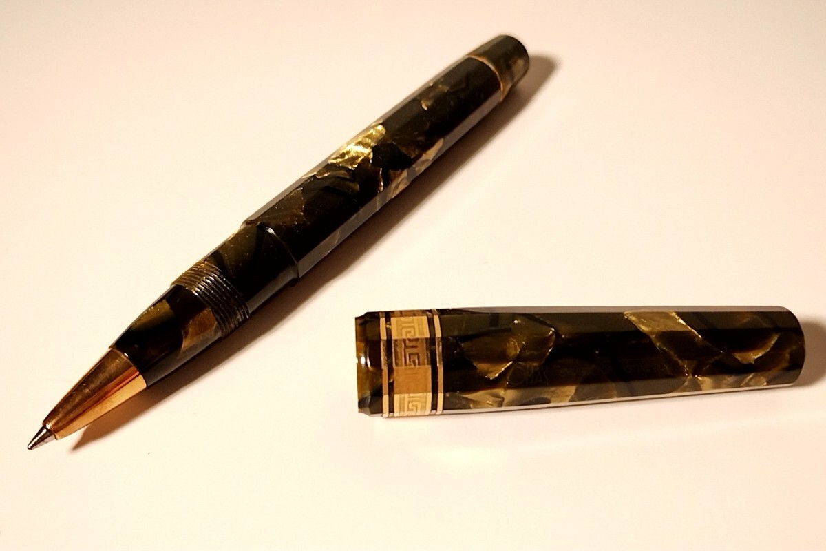 ローラーボール 旧OMAS Paragon Arco Verde / Arco Saft Green セルロイド 12角 金トリム/本体のみ/美品/オマス パラゴン
