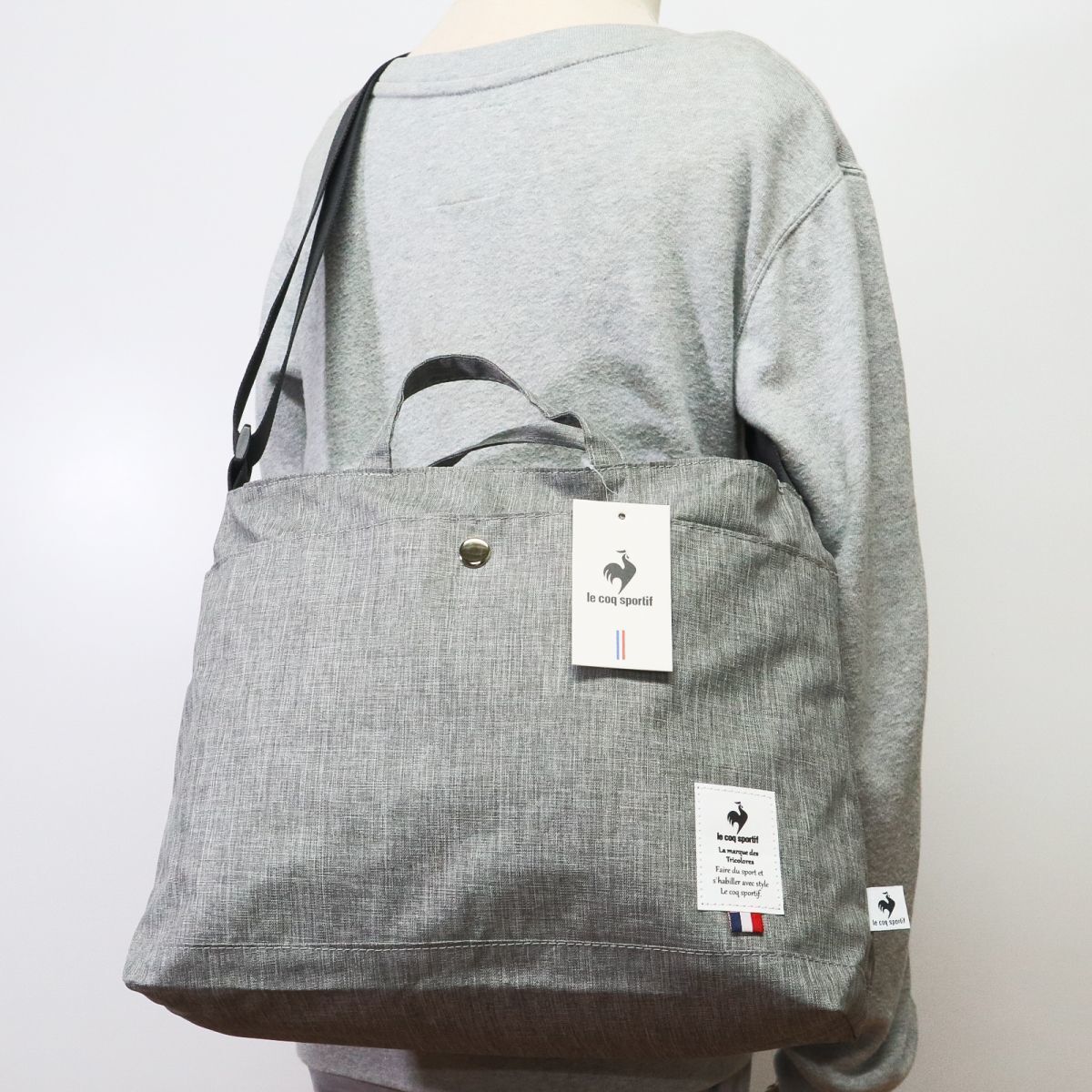 ★ルコック le coq sportif 新品 軽量 収納力 2WAY ななめ掛け ショルダー トートバッグ バッグ 鞄 かばん BAG 灰[36228-010]一 六★QWER