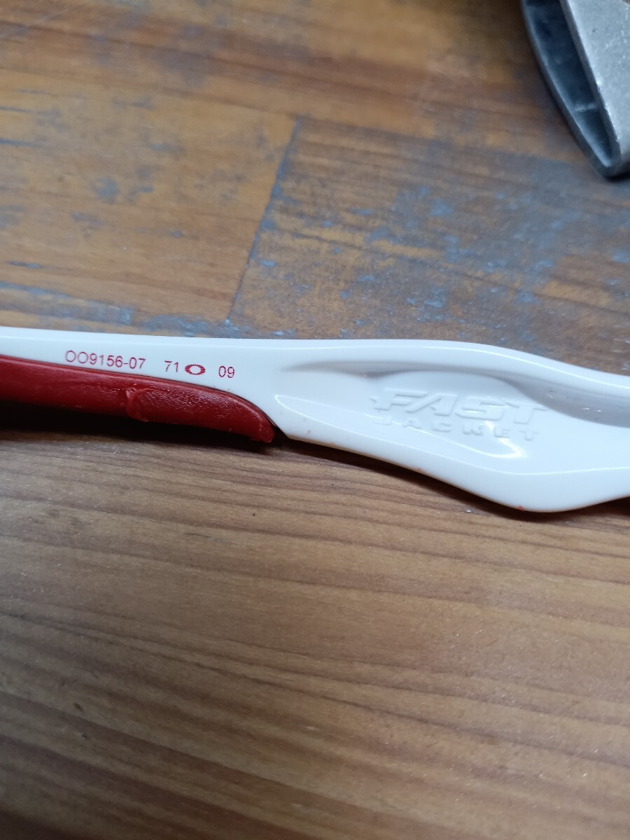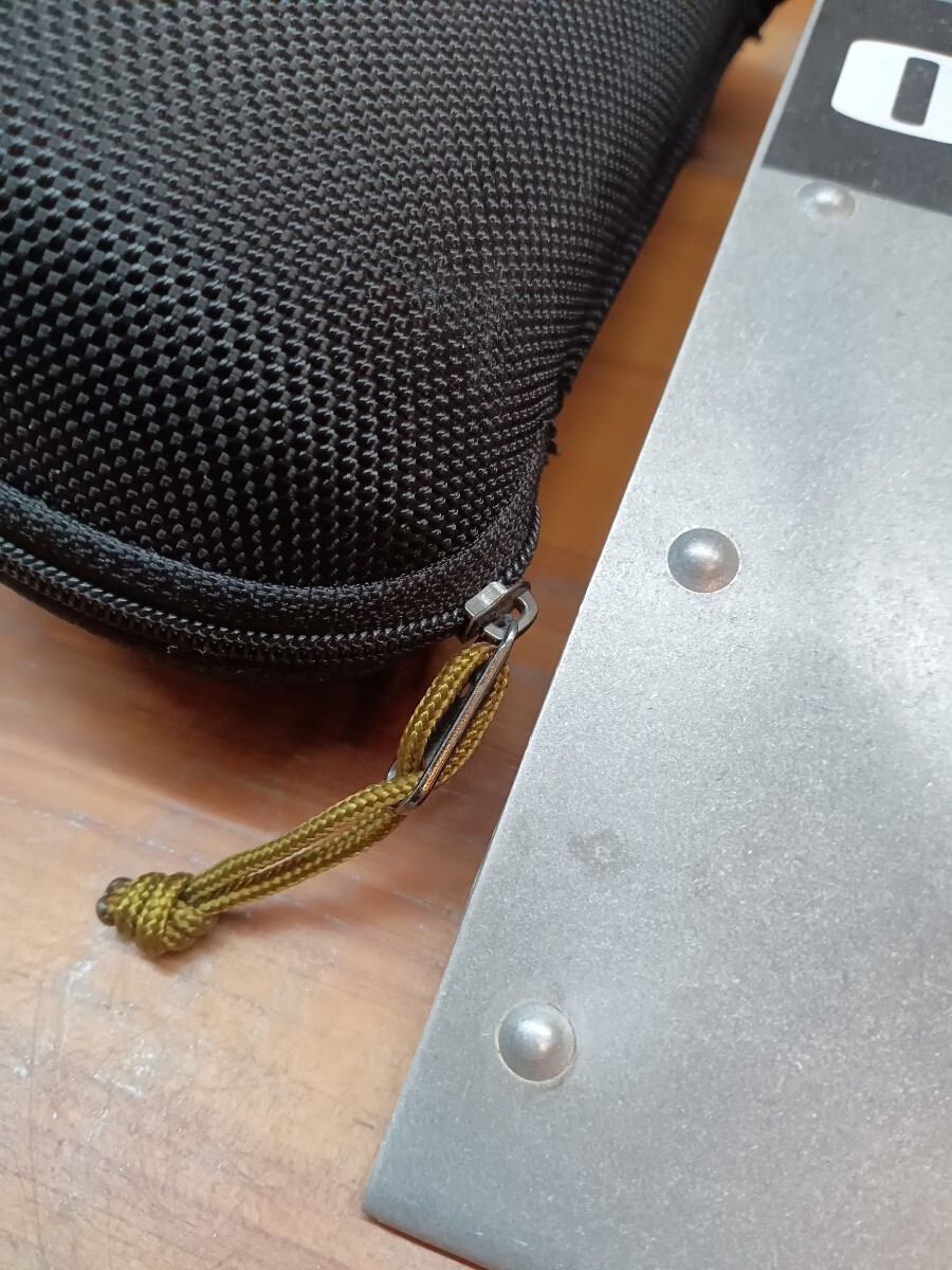 セミハードケースもオークリー純正です。内装はキレイですが、取手のプラスティック部分が取れたので紐をつけています。