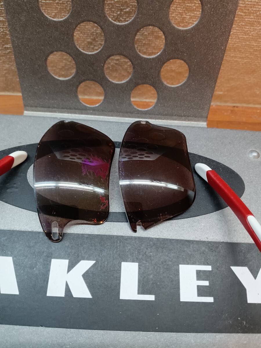 レンズは新品の偏光レンズですのでまだまだ使えます。小さいダメージを気にせずスポーツ等でガンガン使いたい方向けかなと思います。