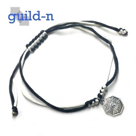【guild-n ★陰陽道 八卦 インヤンチャーム 陰陽 白黒 スネーク サテン ミサンガ アンクレット ブレスレット 腕 足用 メンズ レディース 両用】