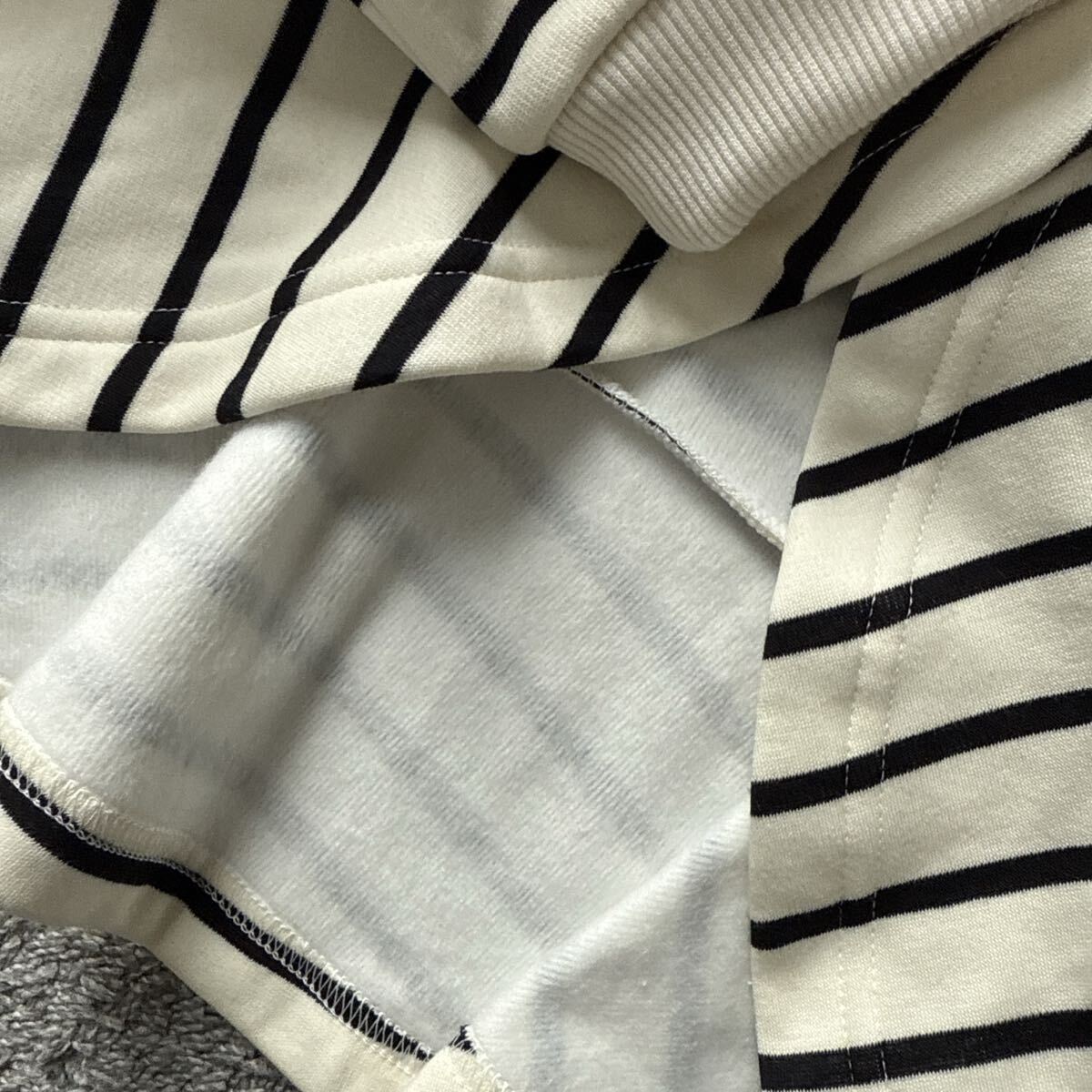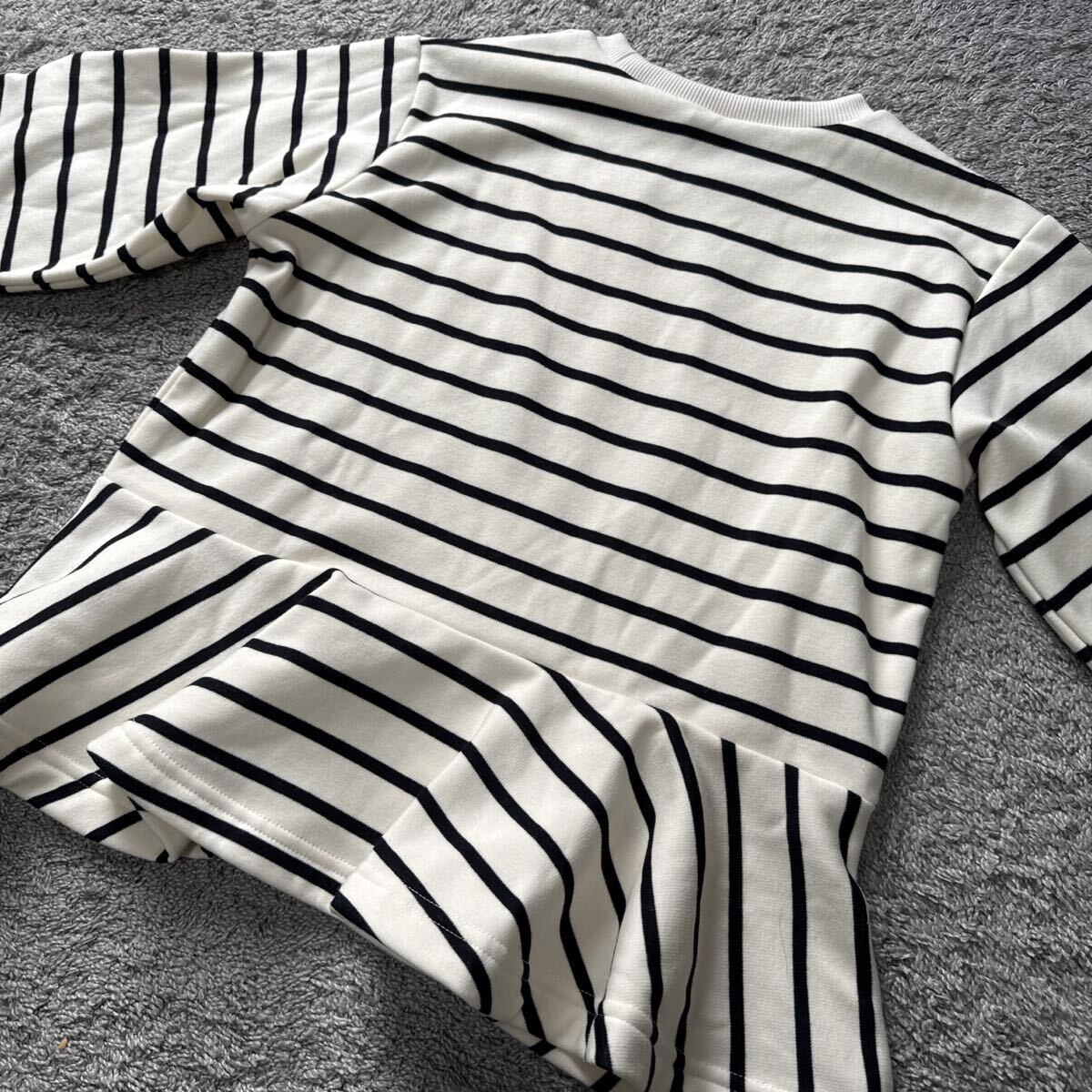 こども服 裏起毛裾フレアボーダートレーナーオフ白です。 未使用タグ付きです。 自宅保存なので細かい事を気になさる方は ご入札を避けて下さいね♪ サイズは140サイズです。 平置きで身幅48センチ 着丈52センチ 素人なので多少の差はご了承ください。 品質はポリエステル60% 綿35% ポリウレタン5% リブ ポリエステル95% ポリウレタン5%です。 実際のお色と画像は光の具合により 多少異なる場合があります。 | |||