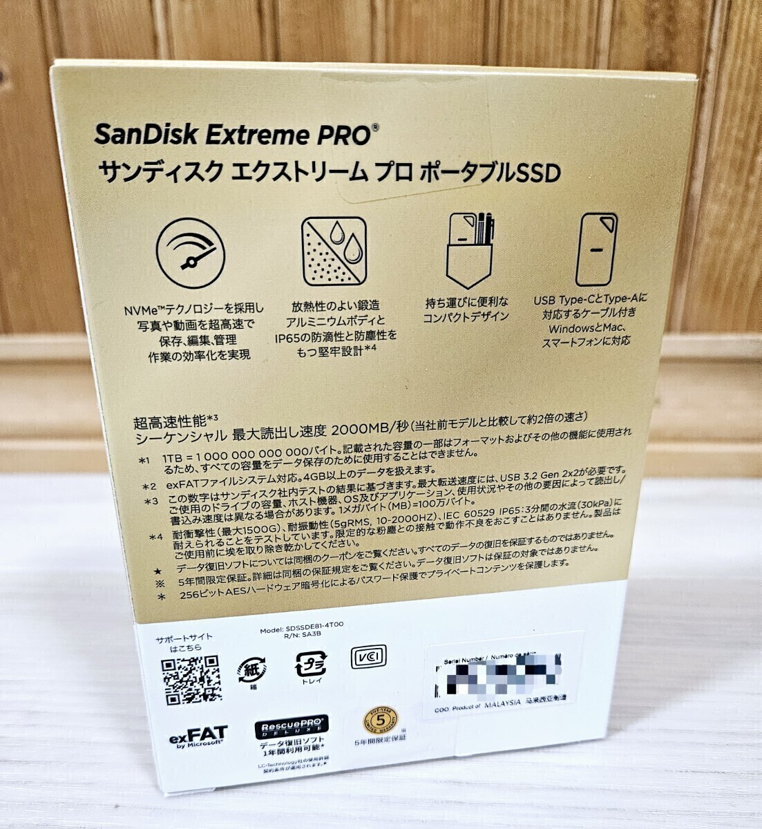 SanDisk エクストリームプロ ポータブルSSD SDSSDE81-4T00-J25 新品未開封品です。