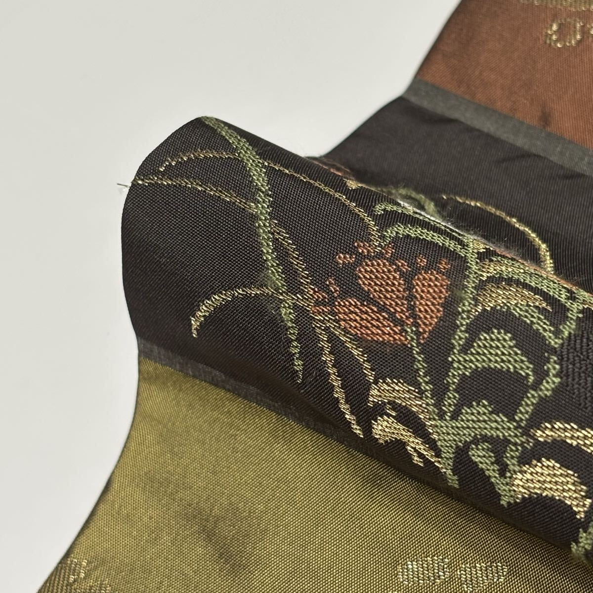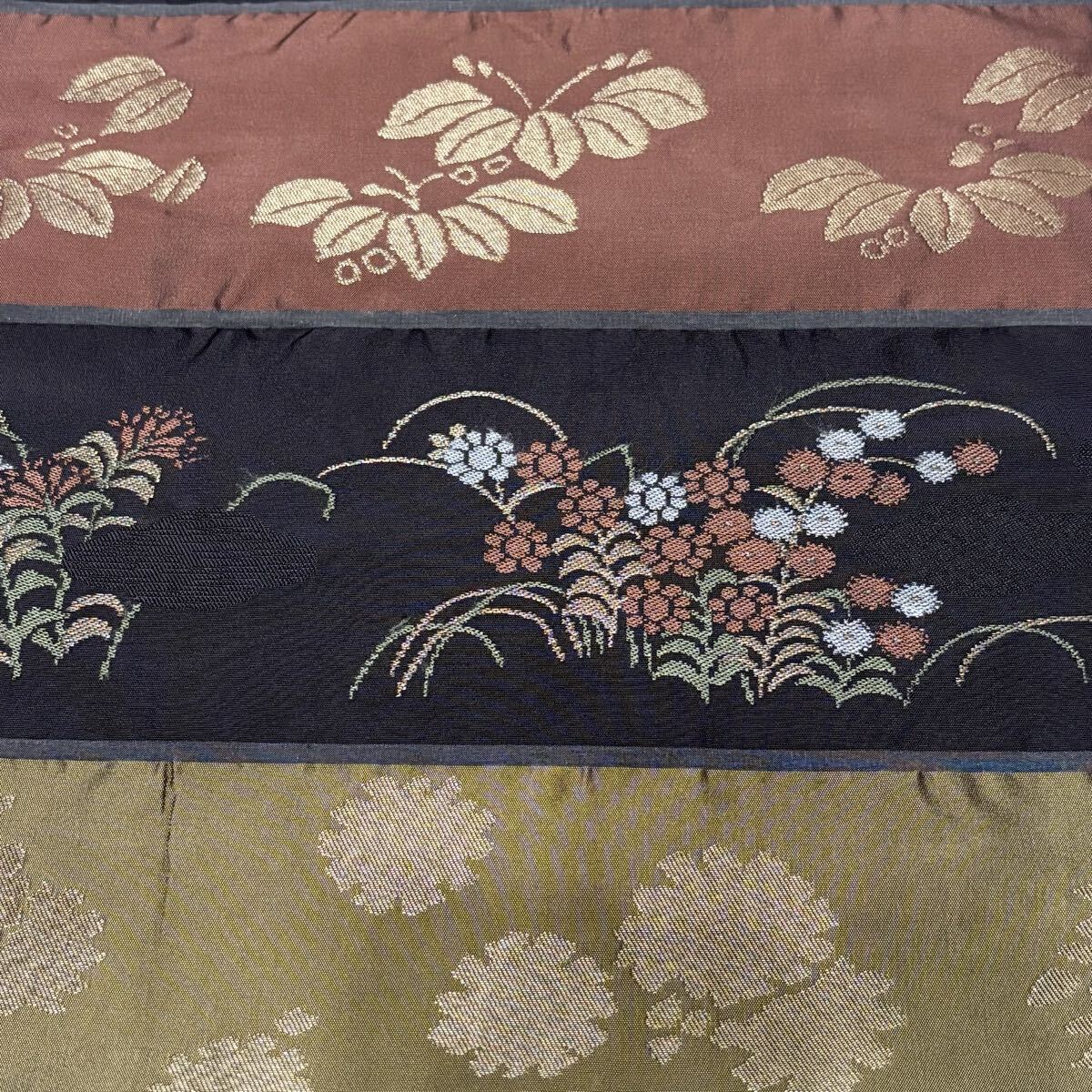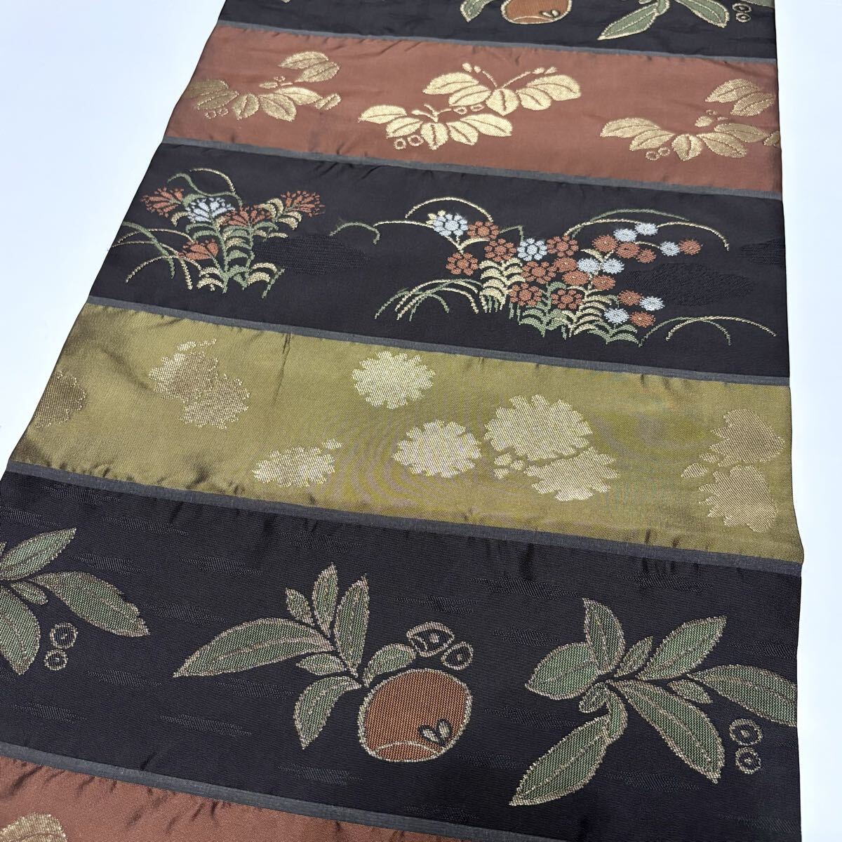 草花柄とカラーの切り替えが印象的で、上品な雰囲気の名古屋帯です。