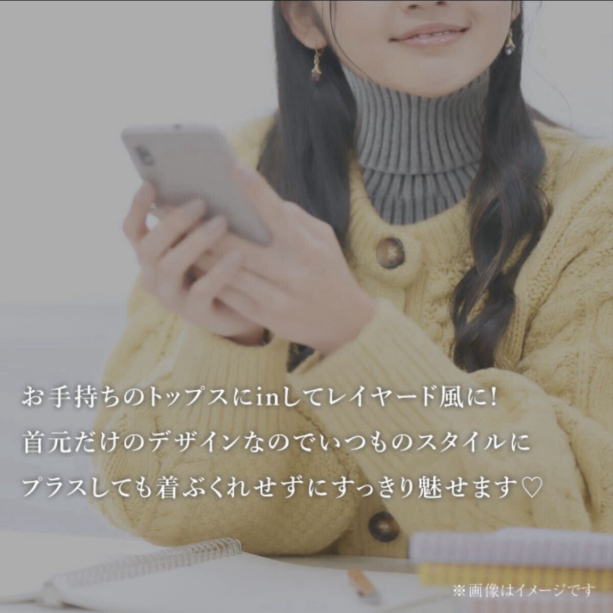 合わせやすいシンプルなタートルネックなので、トップスの上に付けるだけで重ね着風のオシャレコーデに! イン・アウトどちらにしても◎