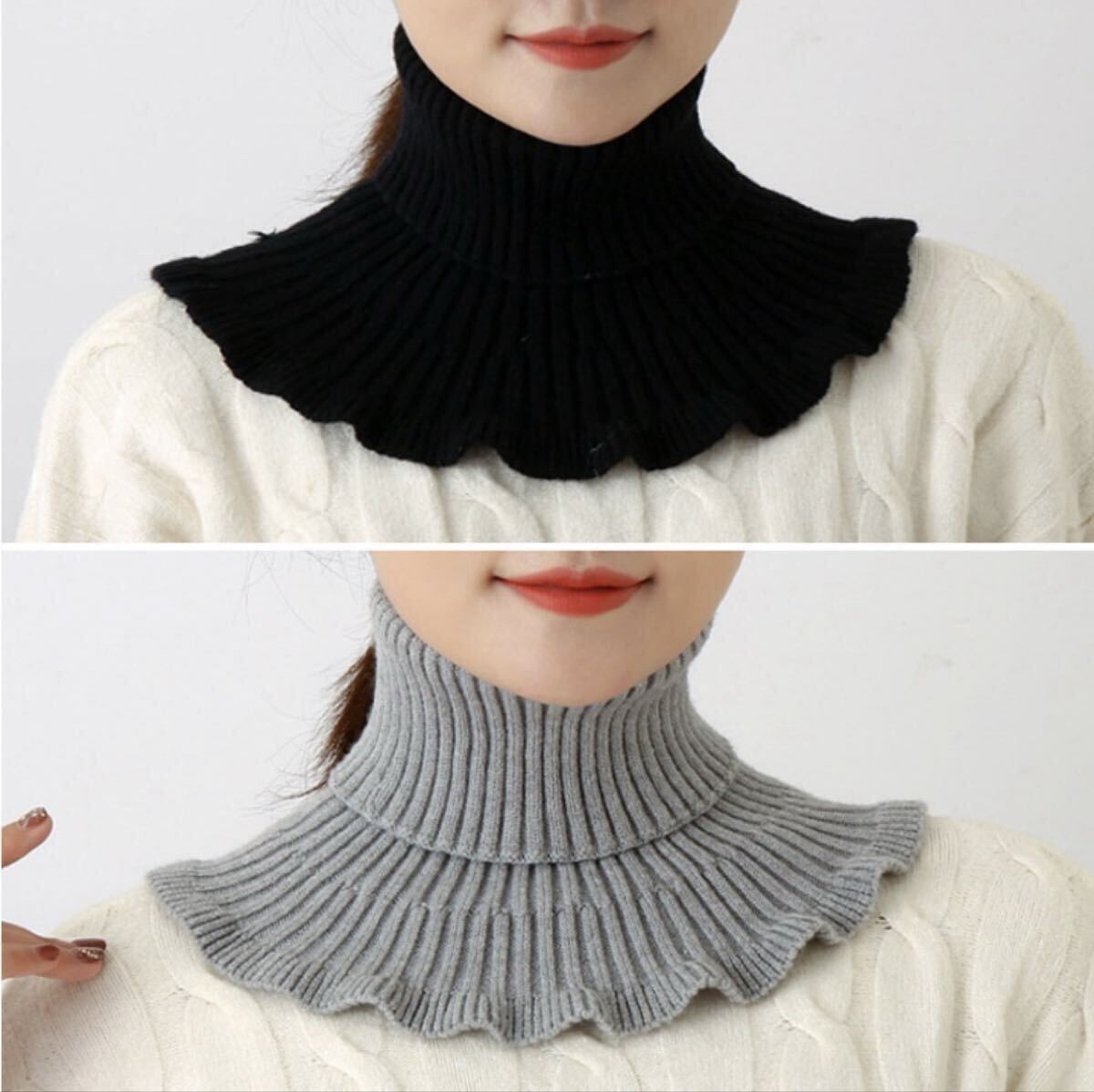 ネックウォーマー ブラック3枚セット つけ襟 タートルネック フリルニット レイヤード 温活 防寒 あったか 首元 襟巻き おしゃれ