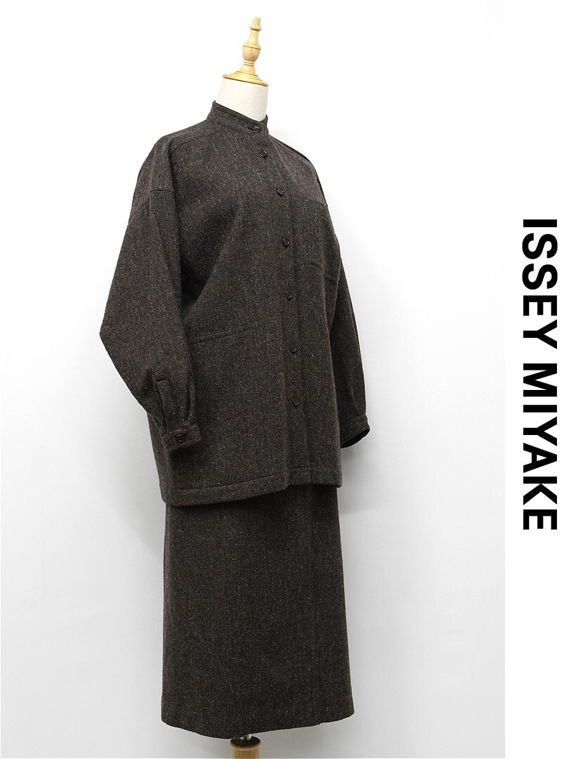 V301/ヴィンテージ 70s IS ISSEY MIYAKE SPORT イッセイミヤケスポーツ セットアップ ツイード シャツ スカート ドロップショルダー 9 M 茶