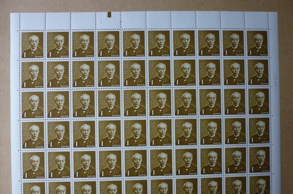 大蔵銘より   1円 前島密     カラーマーク上    計数番号6ケタ        100枚シート   未使用  完美品。