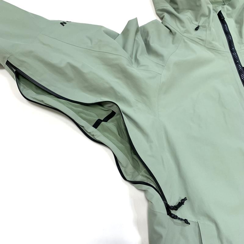 しっかり汗を外部へ逃がす高い透湿性も備えています。豊富なベントや綿密な計算に基づき配置されたライナー、耐水ジップ、動作性を追求したライダー考案の立体裁断フィットなど、機能性を第一に考えた[ak]のデザインやバックカントリーでの実用性には文句の付けようがありません。