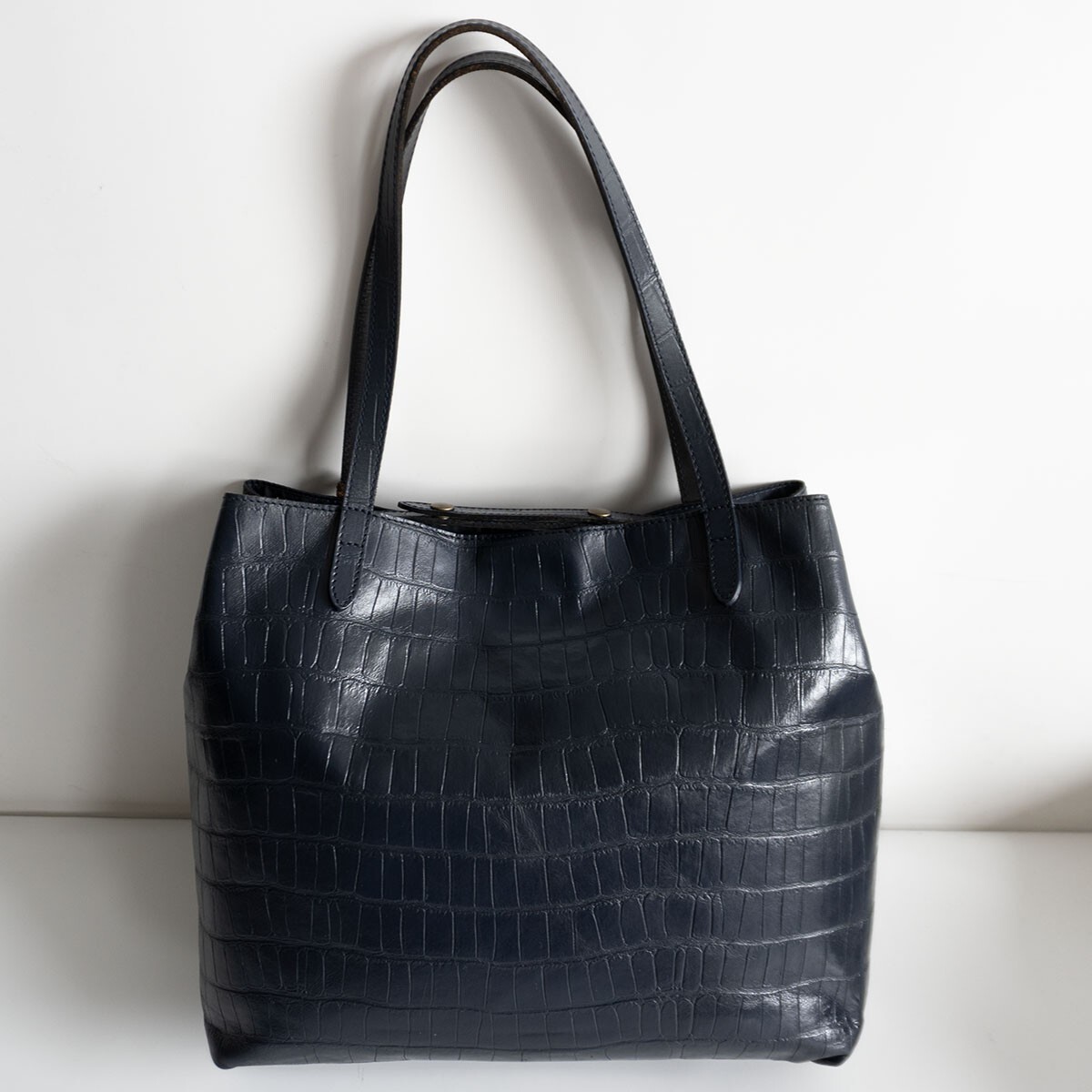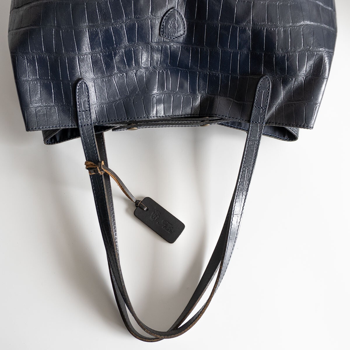 あらゆるシーンで使うことができる、シンプルなデザインのトートバッグ。ハンドルが約24cmと少し長く、男性でも余裕で肩掛けできる長さで、大きさはモデル【15/20】より一回り小さく、A4サイズの書類やファイルがちょうど収まるサイズ感です。間口に付けられたレザーストラップは、2段階に調節可能で、閉じると船型に、開くと長方形型になり2通りの表情をお楽しみいただけます。また未使用時には、内側のループに挿し込むことが可能です。肩掛けしやすいよう長くなったハンドルは、平手になっており、肩へのあたりが優しく、バッグは小脇にしっかり収まります。内側にはファスナーポケットが1つ付いており、小物の整理にも便利で、街でも、旅行でもぴったりな使い心地。シンプルでエイジレスなデザインは、コーディネートを選ばず、あらゆるシーンでお使いいただけます。