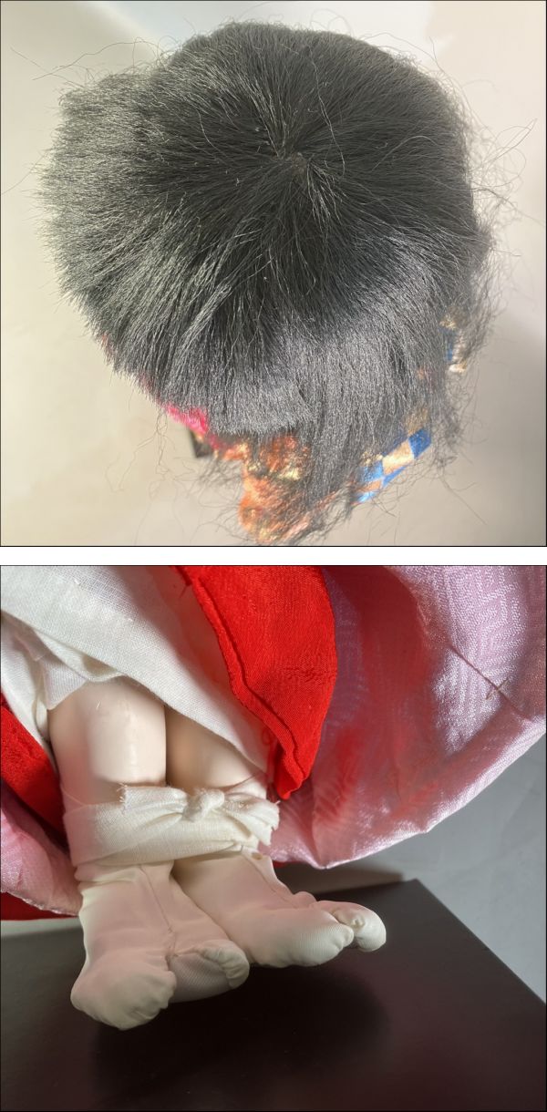 | K2-393 市松人形 着せ替え/抱き人形 女の子 日本人形 着物/節句 木製スタンド付き 当時物 高さ51㎝位 | ||