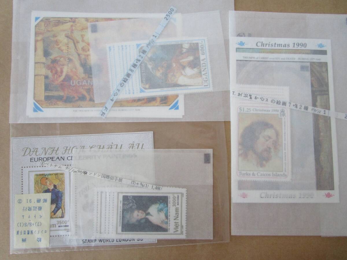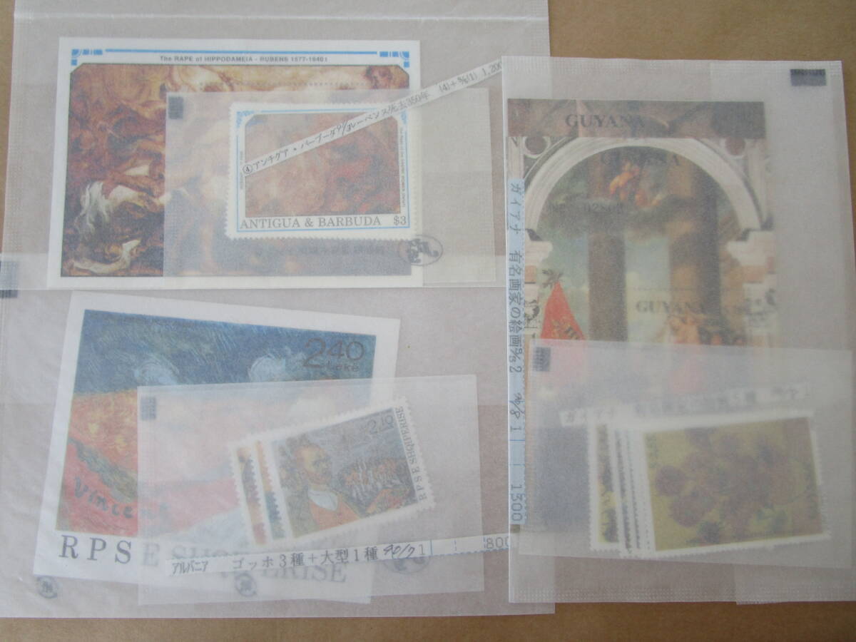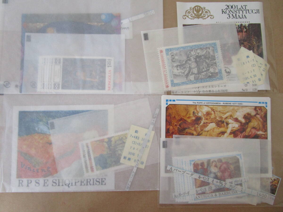 ★外国切手 絵画など 未使用約150枚 小型シート40枚★