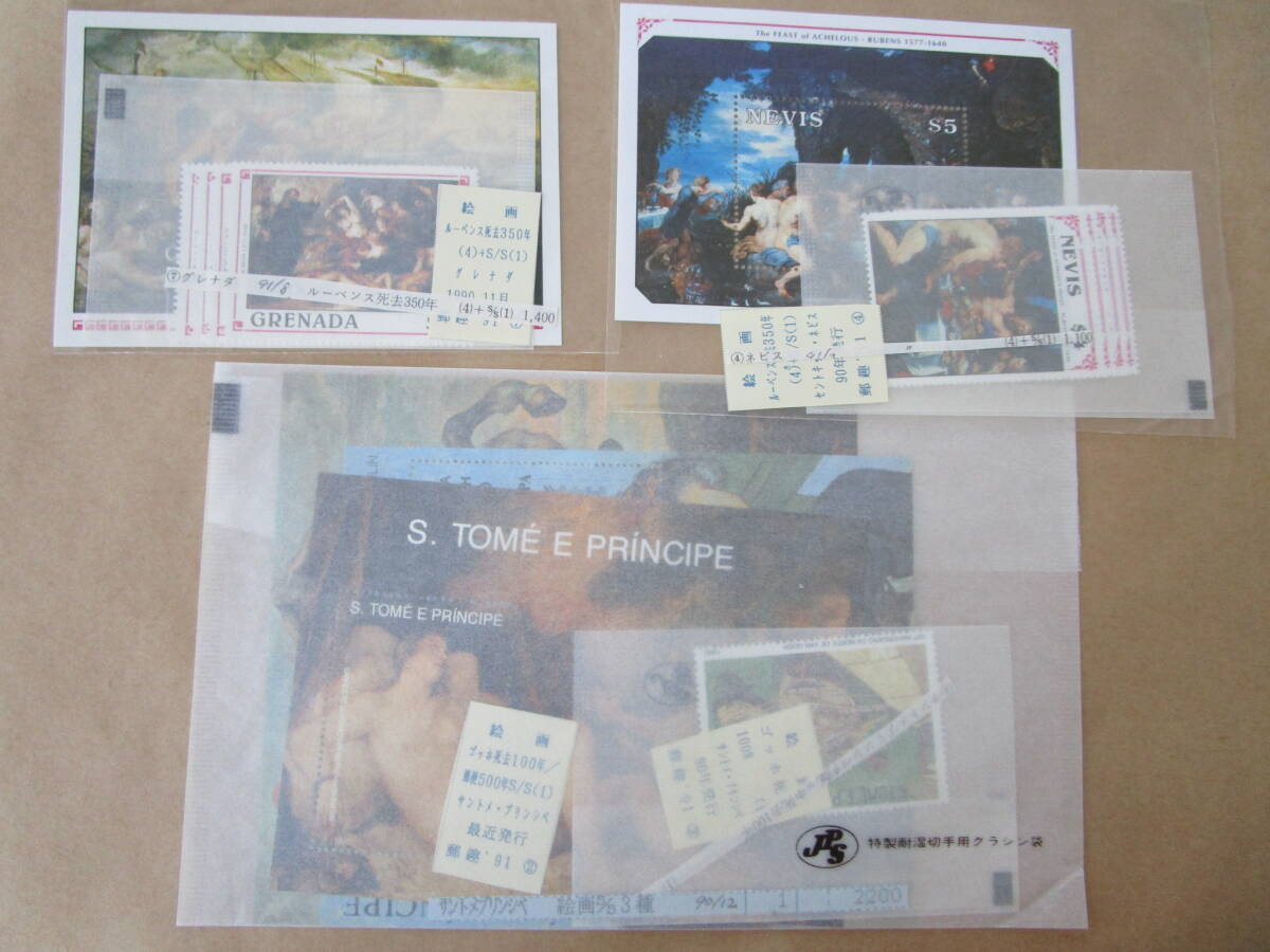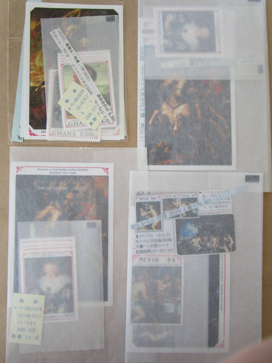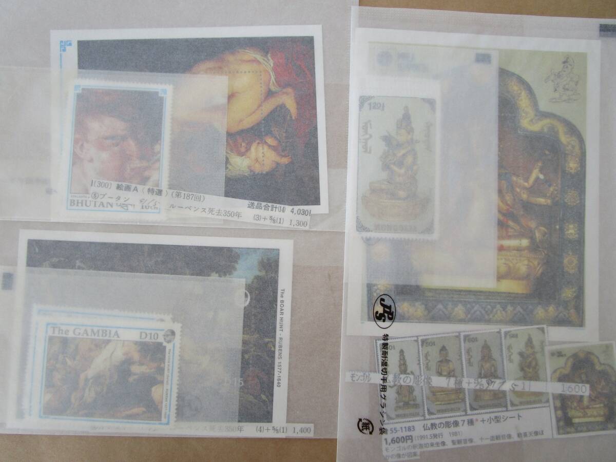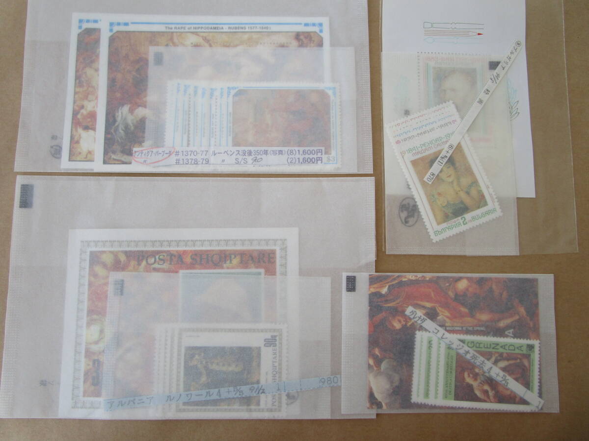★外国切手 絵画など 未使用約150枚 小型シート40枚★