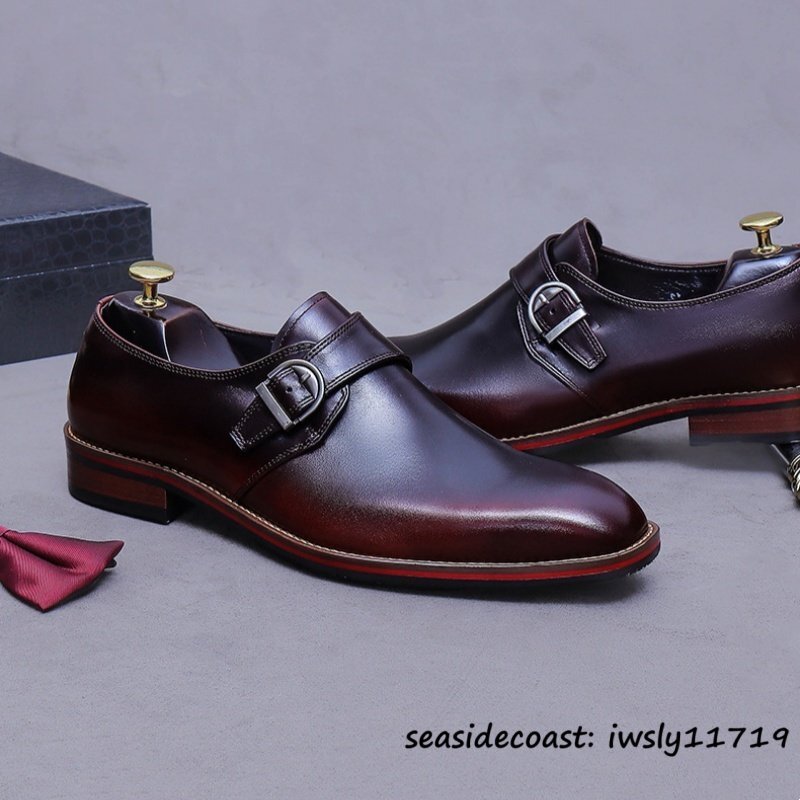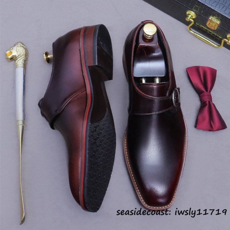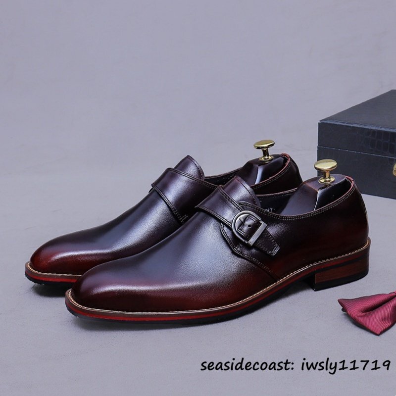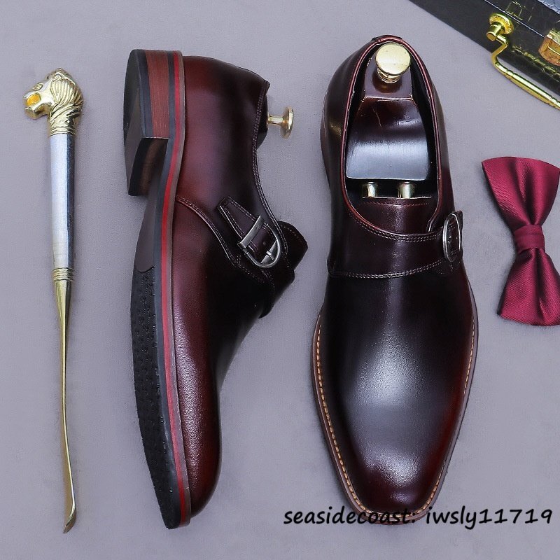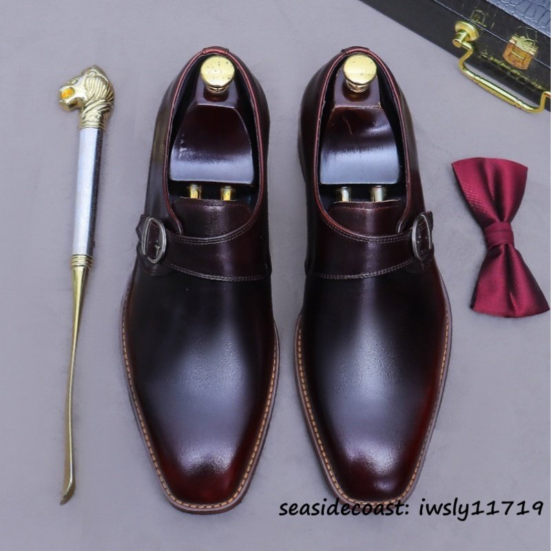 定価11万◆メンズ モンクストラップ 最高級 ビジネスシューズ 職人手塗仕上げ 本革 レザーシューズ 天然牛革 紳士靴 革靴 ブラウン 24.5cm
