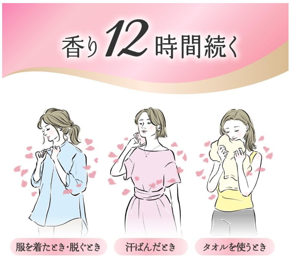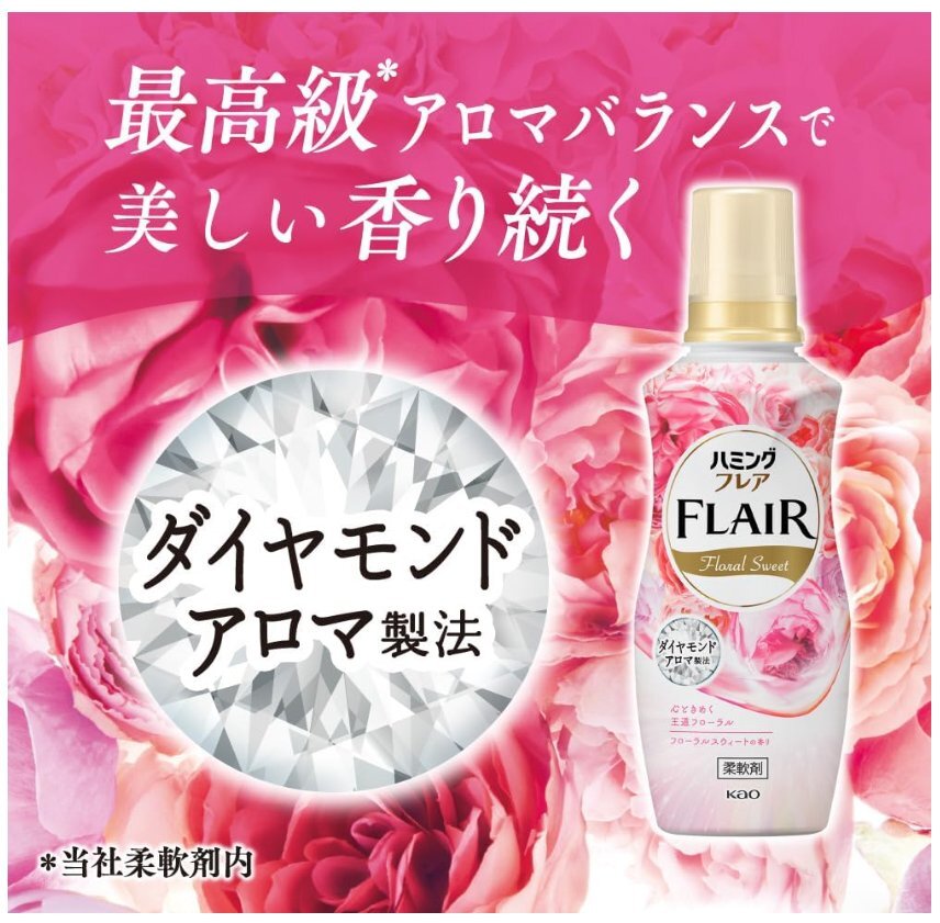 | 商品の説明 | 最高級*1アロマバランスで美しい香り続く、ダイヤモンドアロマ製法。 華やかなフローラルにピーチのフレッシュな甘さと、バニラの温かみを加えた、心ときめくフローラルスウィートの香り。 ・香り12時間続く(服を着たとき・脱ぐとき、汗ばんだとき、タオルを使うとき) ・極上の肌ざわり*2 ・静電気を防ぐ ・洗たくジワを防ぐ ・抗菌*3 ・防臭効果 *1当社柔軟剤内 *2従来品比 *3すべての菌の増殖を抑制するわけではありません |