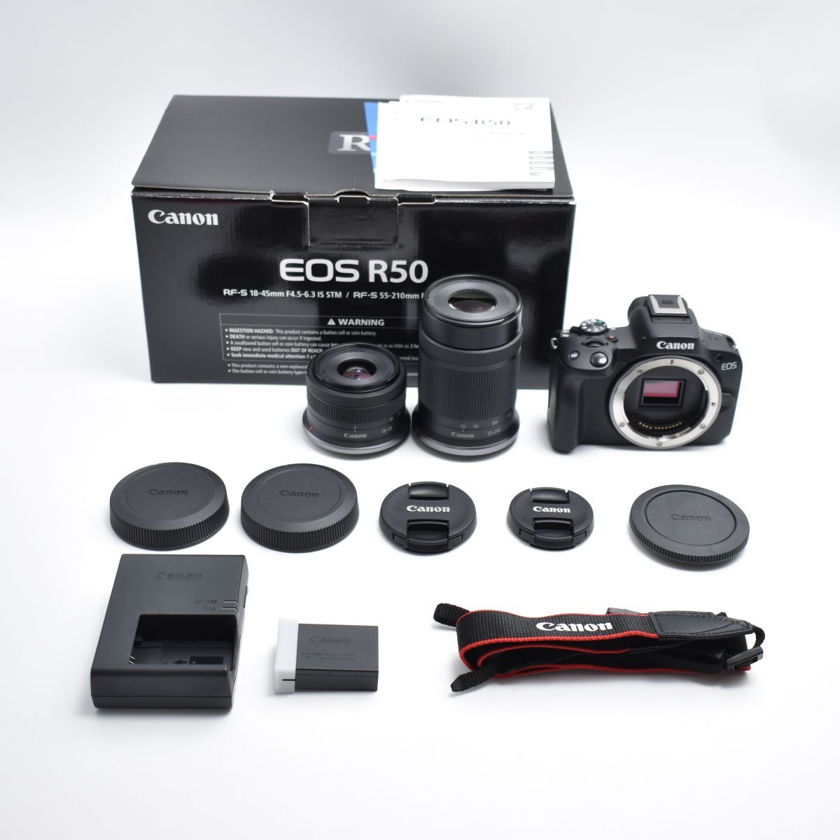 B#9552 Canon ミラーレス一眼カメラ EOS R50 ダブルズームキット(RF-S18-45+RF-S55-210) ブラック/APS-C/約375g EOSR50BK-WZK