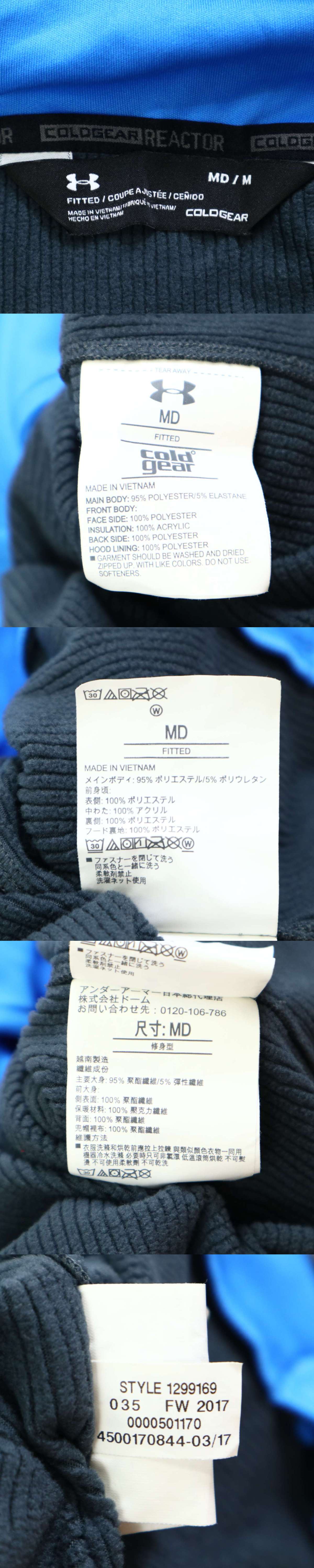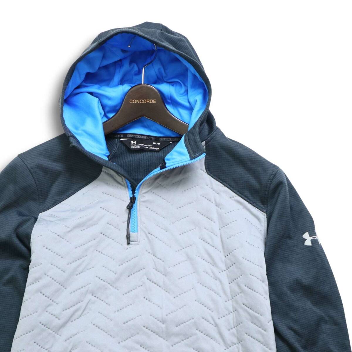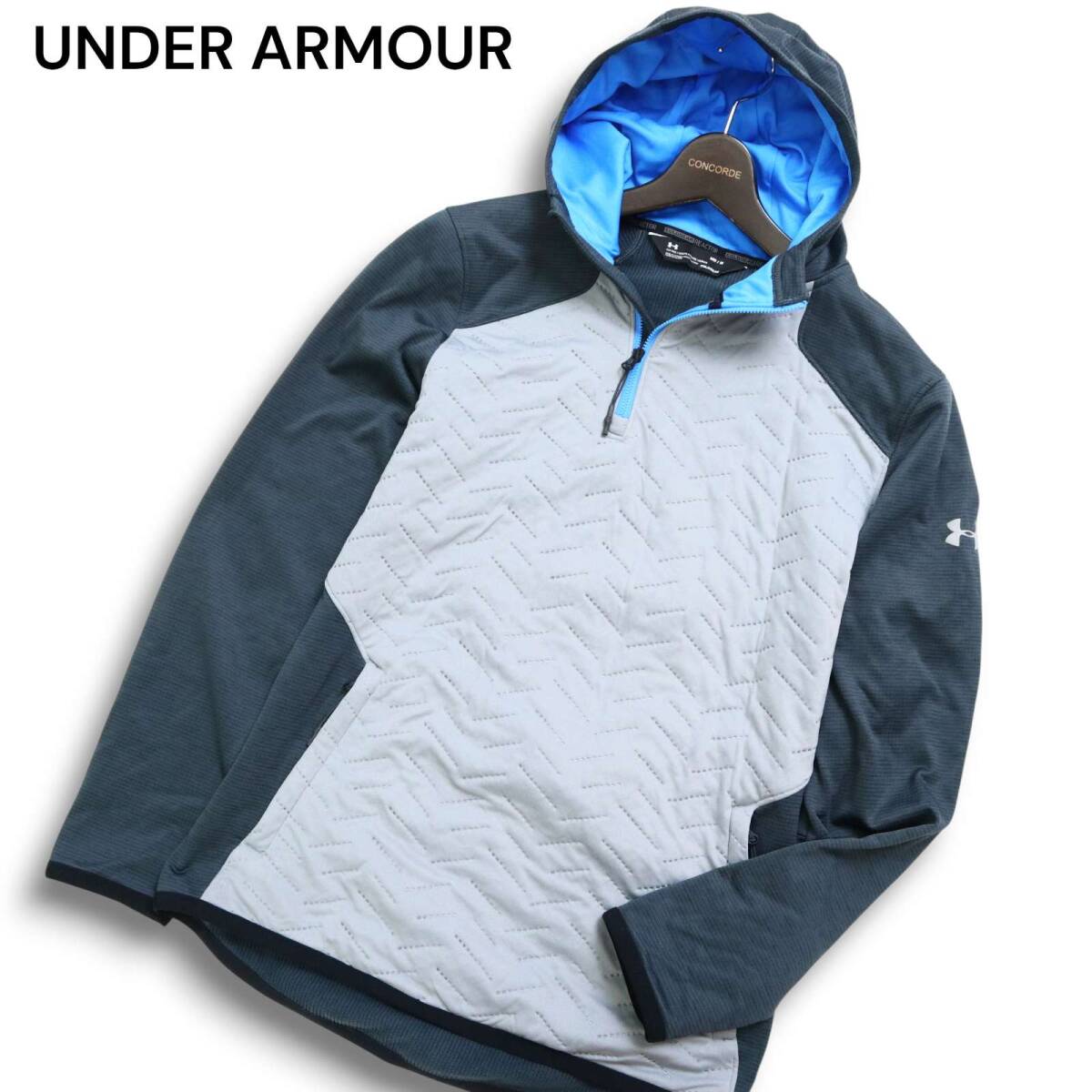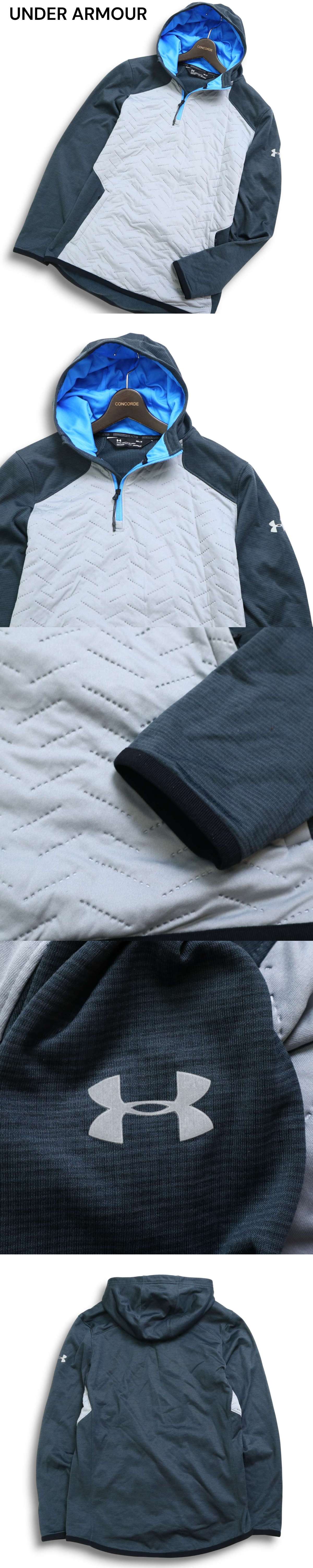 UNDER ARMOUR アンダーアーマー cold gear 裏起毛★ 中綿 ハーフジップ フーディー パーカー Sz.M メンズ 灰 トレーニング