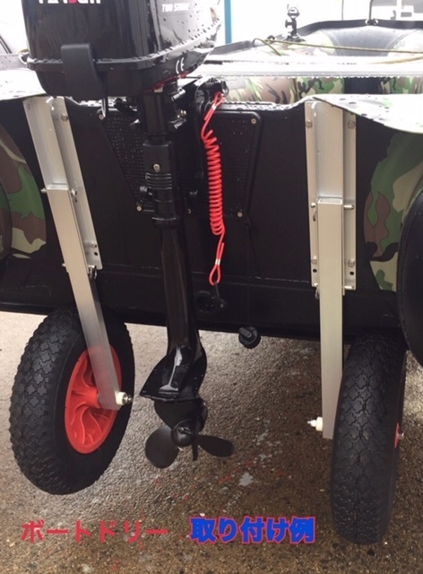 | 特徴 | ・CVP社製 ・アルミ ボートドーリー ・タイヤ空気圧調整可能 ・タイヤ耐久荷重 136kg ・ホイールはプラスチック製 外径 26cm ・スナップピンにより簡単着脱 |