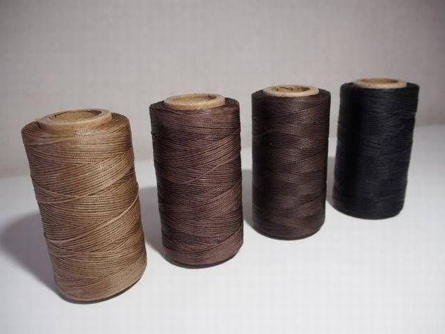 ロウ引き糸とはロウ(ろうそくのロウ)が塗ってある糸のことで、ロウを塗ることで糸の耐久性があがり、切れにくくなります。