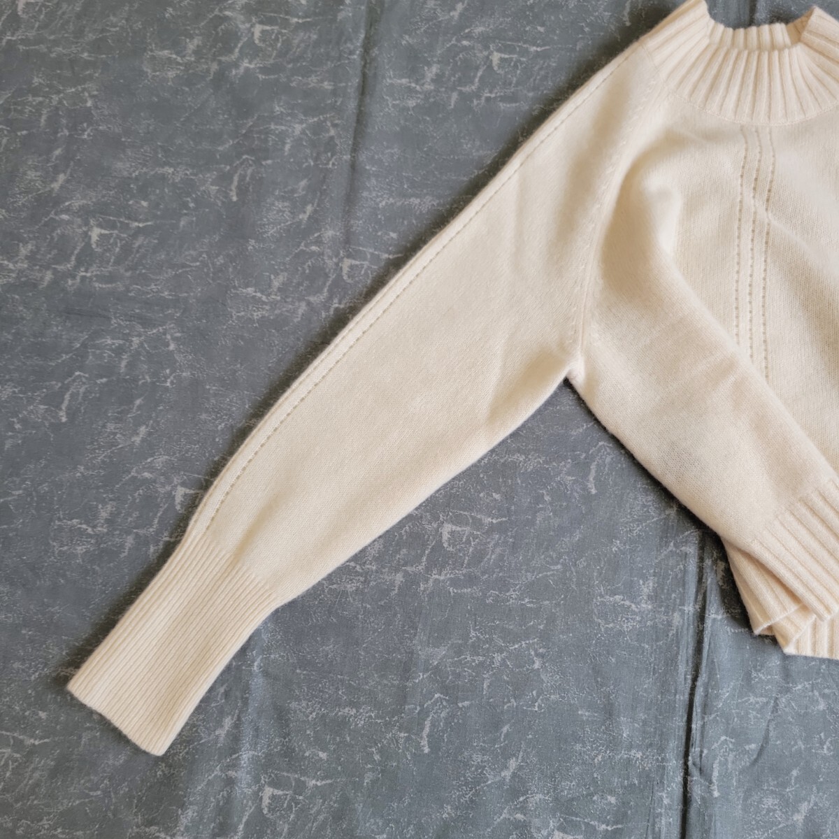 カシミヤ100%の軽くて柔らかいハイネックニット。