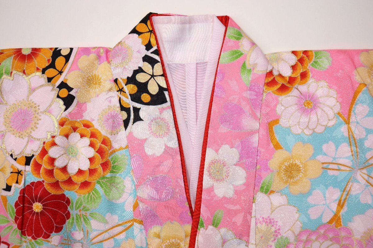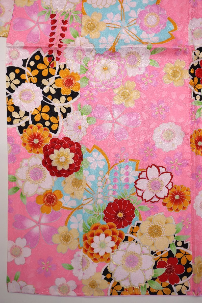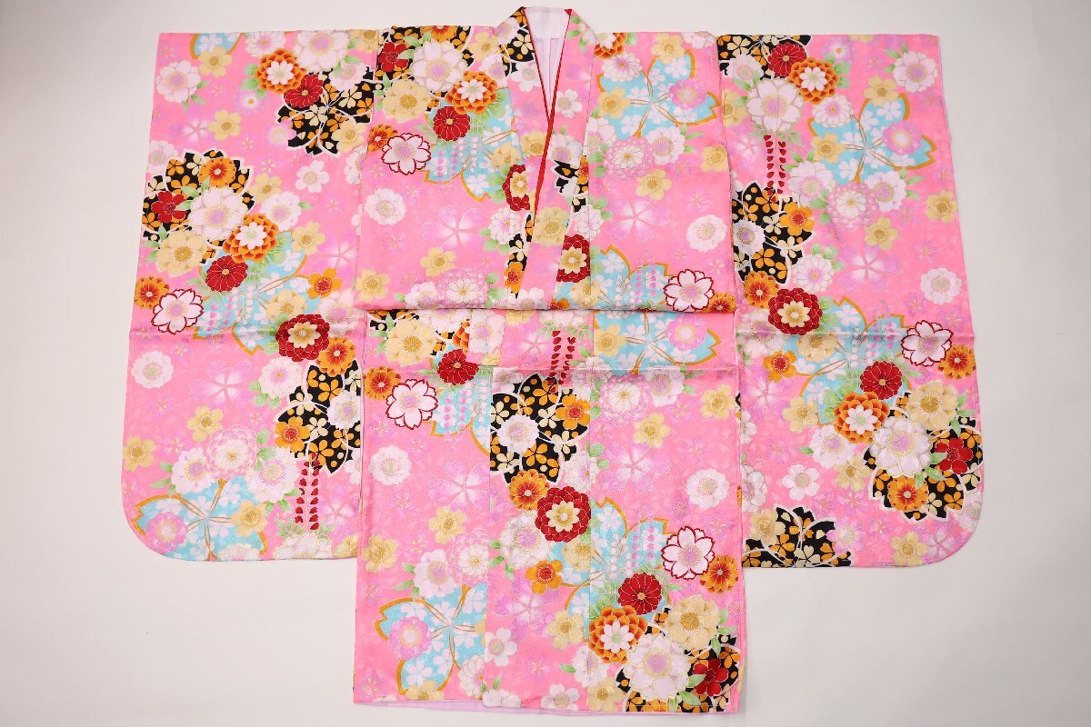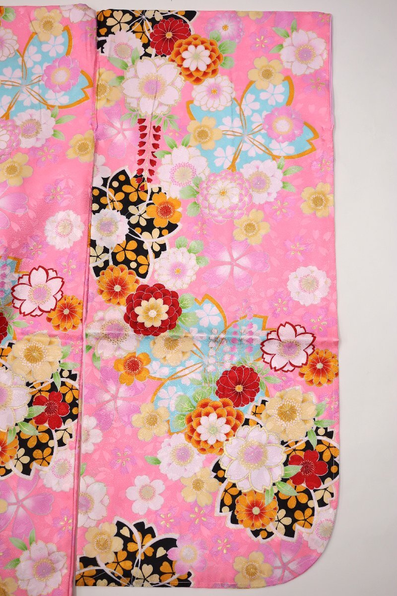 ピンク色系に染め上げた、可愛らしい七五三 女児(7歳用)着物です。