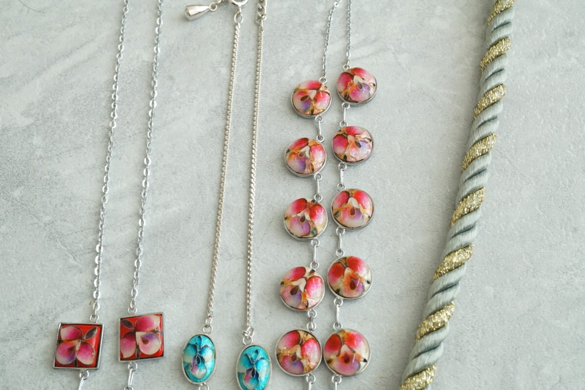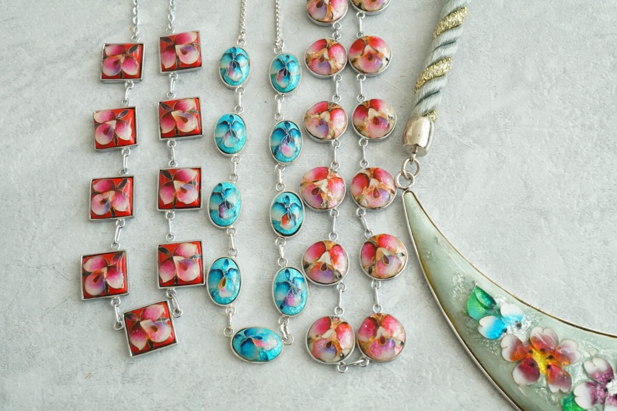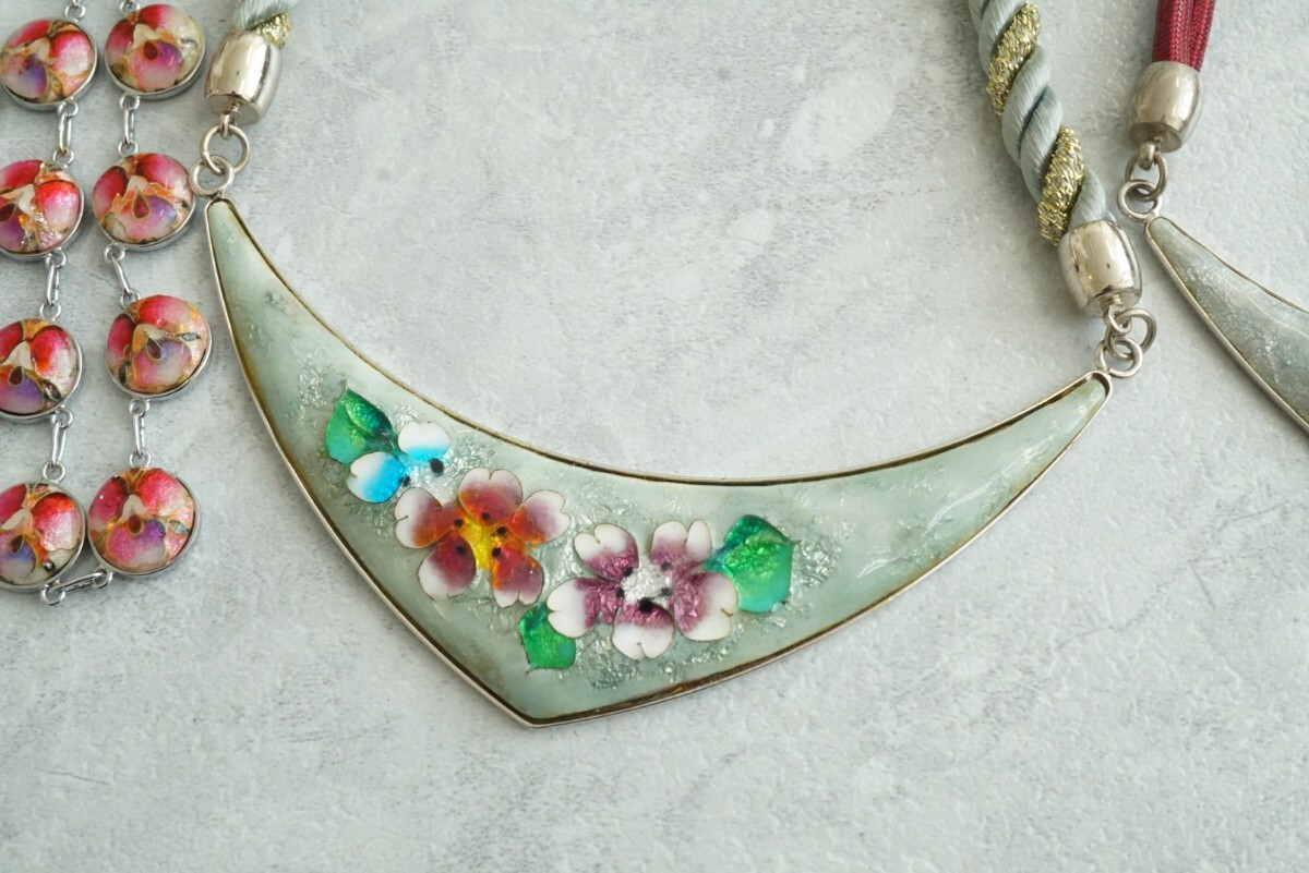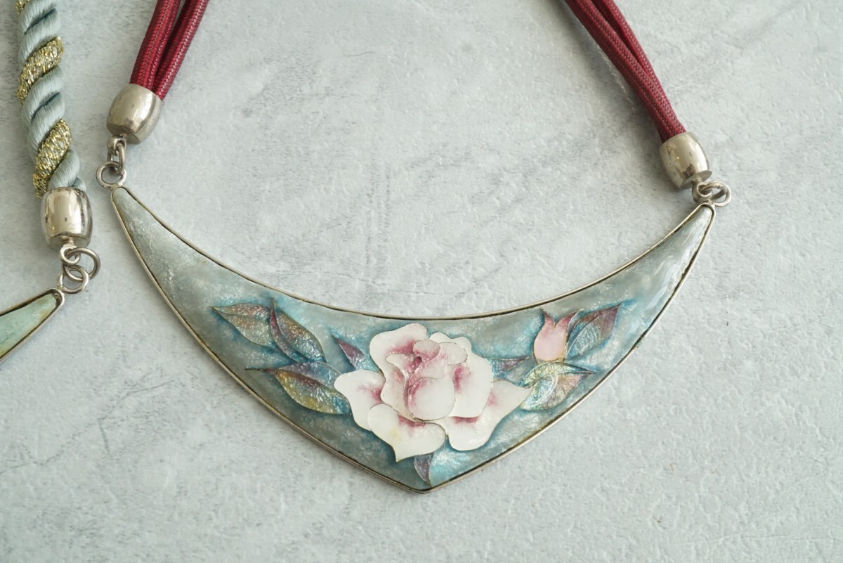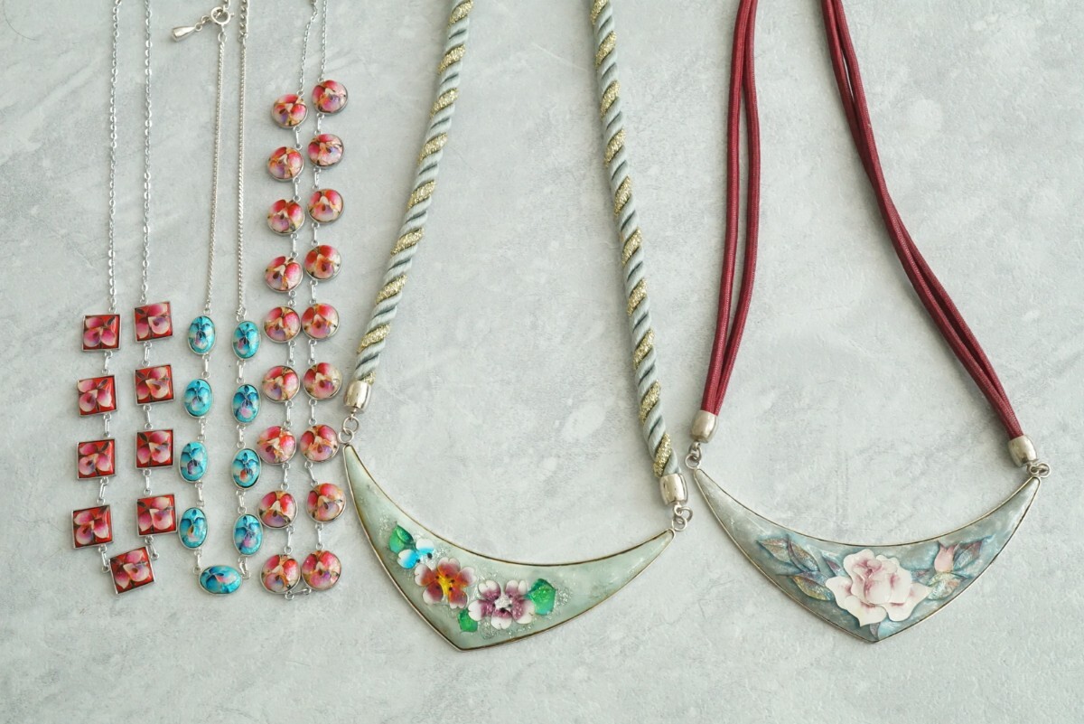 B745 花 フラワー 七宝焼など 陶器 焼き物 ネックレス ペンダント 5点 ヴィンテージ アクセサリー 大量 まとめて おまとめ まとめ売り