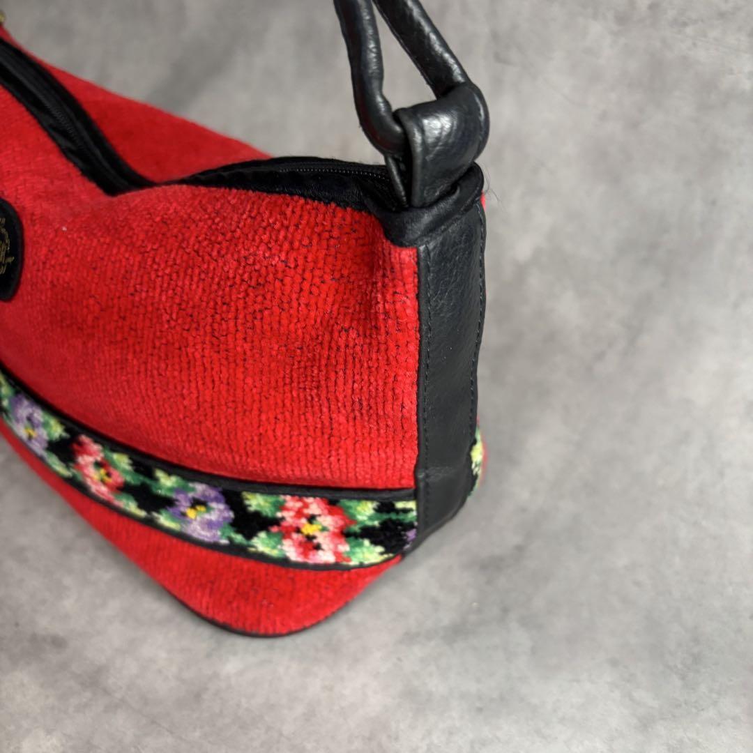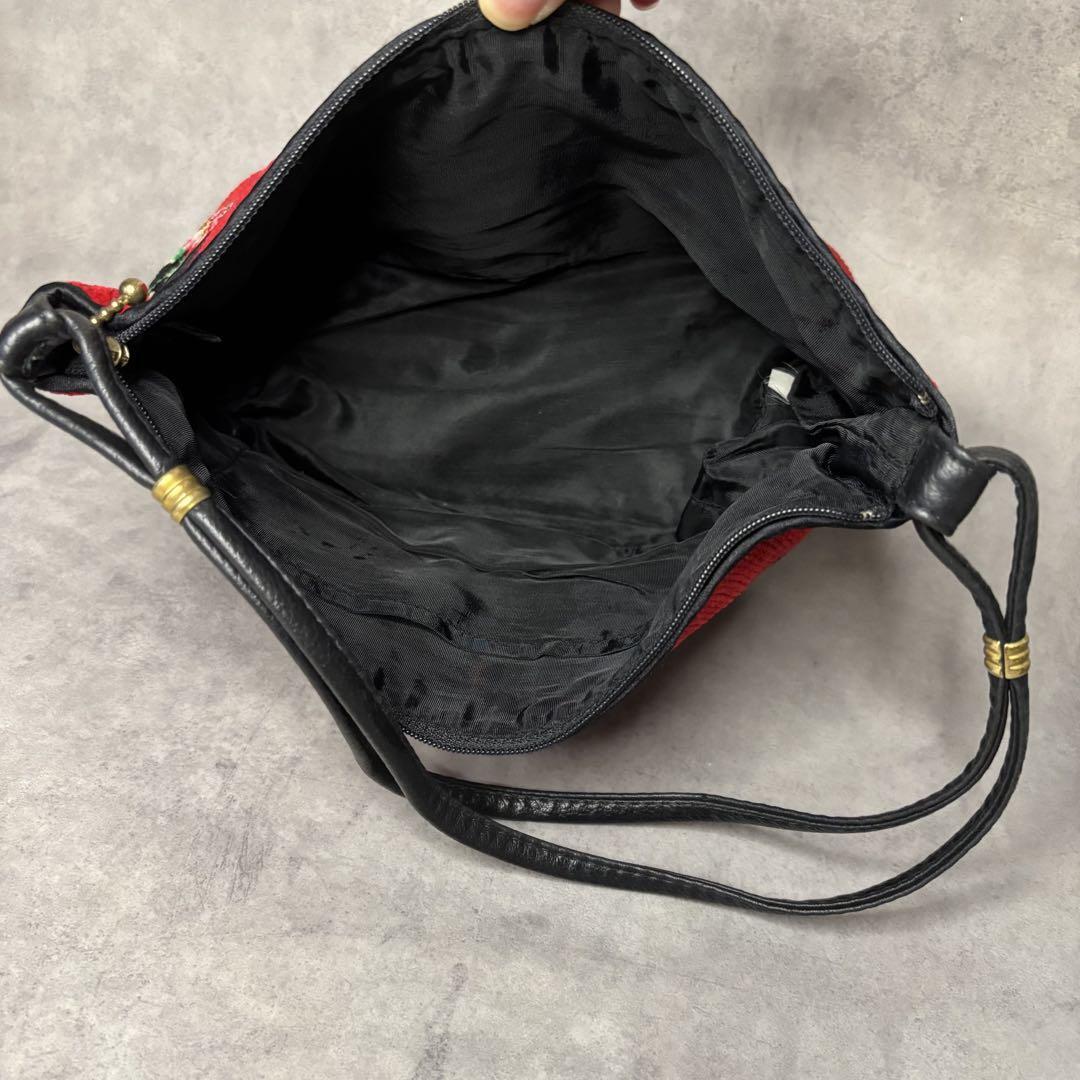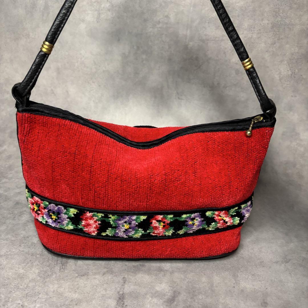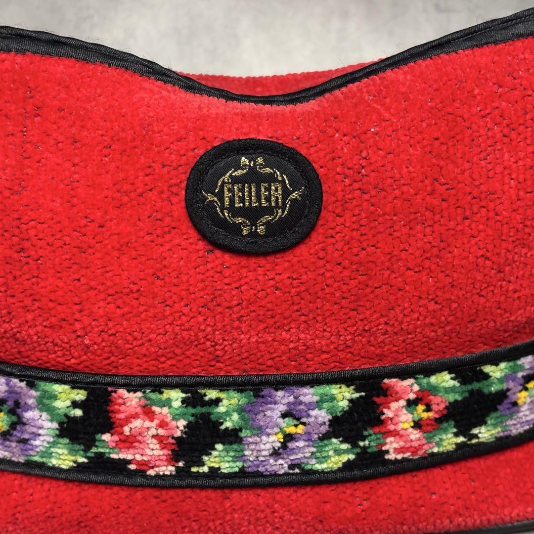 FEILER フェイラー ヴィンテージ ショルダーバッグ ハンドバッグ 赤×花柄 刺繍デザイン