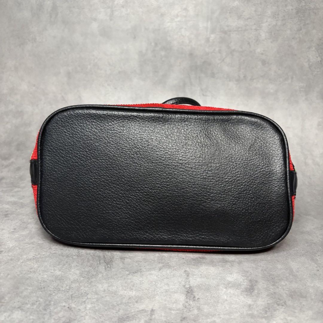 発色の良い赤ベースの生地に、黒の花柄リボンラインとブランドロゴが映えるデザイン。