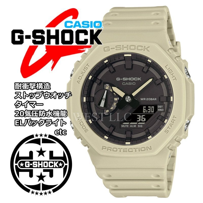 G- SHOCKから、オクタゴン(八角形)ケースモデル、GA-2100シリーズのシックなカラーモデルです。 初代モデル“DW-5000C”にも採用された“八角形フォルム”を継承。ケース素材には、高剛性を発揮するカーボンファイバー強化樹脂を使用し、薄型化と軽量化を実現。タフな構造はそのままに無駄を省いたシンプルなデザインのコンビネーションモデルとしています。カラーリングはどんな服にも合わせやすいベージュをラインアップ。文字板をブラックアウトとすることで、クールで洗練された印象を与えます。G-SHOCK初代モデルのDNAを受け継ぎながら、デザイン、フォルム、サイズに徹底的にこだわったG-SHOCKです。 駆動方法クオーツ(電池) モジュール5611 防水性能20気圧防水 表示方式アナログデジタル表示 ケースカーボン/樹脂 ガラス無機ガラス ベルト樹脂バンド 重量約52.0g サイズ (縦x横x厚さ)約48.0x45.0x11.5mm 適合サイズ手首周り実寸約【13.5~21.0】cm 機能電池寿命:約3年 ワールドタイム:世界48都市(31タイムゾーン、サマータイム設定機能付き)+UTC(協定世界時)の時刻表示 ストップウオッチ(1/100秒(1時間未満)/1秒(1時間以上)、24時間計、スプリット付き) タイマー(セット単位:1秒、最大セット:24時間、1秒単位で計測) 時刻アラーム5本・時報 ダブルLEDライト:文字板用LEDライト(スーパーイルミネーター、残照機能、残照時間切替(1.5秒/3秒)付き)、LCD部用LEDバックライト(スーパーイルミネーター、残照機能、残照時間切替(1.5秒/3秒)付き) LED:ホワイト フルオートカレンダー 操作音ON/OFF切替機能 精度:平均月差:±15秒 12/24時間制表示切替 針退避機能(針が液晶表示と重なって見づらいときは、針を液晶表示の上から一時的に退避させることができます) |