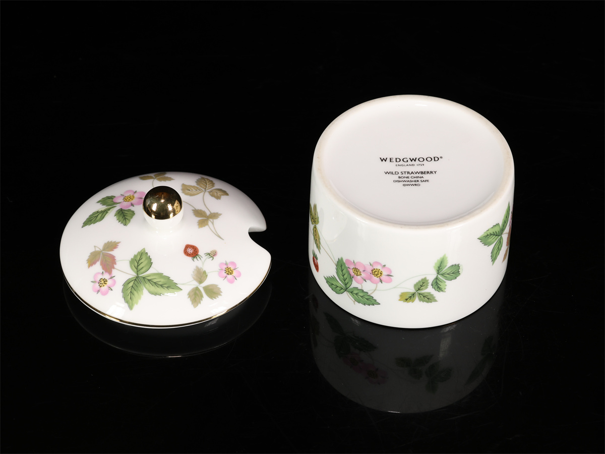 久1242 WEDGWOOD 【ウェッジウッド】 ワイルドストロベリー紋 シュガーポット 共箱付 未使用品
