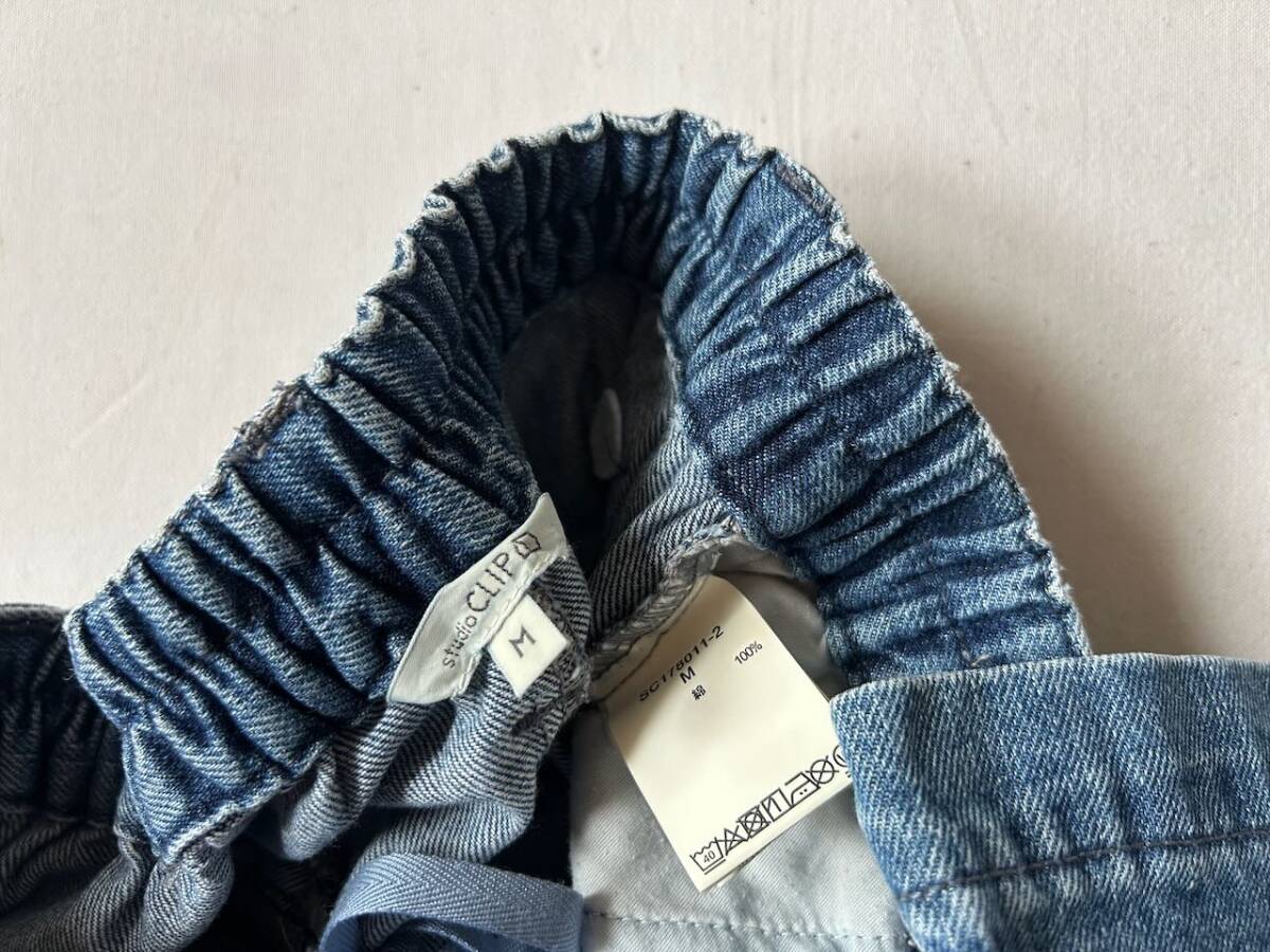 スタジオクリップ studio CLIPの、定番アイテムとして活躍してくれるワイドシルエットのデニムパンツ、イージーパンツです。 色 インディゴブルー ウエスト後ろ側にゴム入り フロントファスナーなし 前左右ポケット付き 後ろポケット飾り ベルトループ付き サイズ表示 M 実寸 ゴム伸ばさずウエスト34cm 股下54cm 股上33cm ヒップ55cm わたり幅35cm 裾幅27cmくらい (平置きにて計測しております。) 素材 綿100% *画像でコーディネートした他アイテムは付属致しません。 中古品とお考え下さい。 特に目立つ汚れやキズはありません。 また、写真画像はモニター環境や撮影状況などに応じて、実際の商品とお色と少し異なる場合があります。よろしくお願いいたします。 ダメージの見落としがある場合はご容赦ください。 他、気になる点はご質問下さい。 なお、落札後のキャンセルはできません。 発送後はノーリターン、ノークレームでお願いします。 オークション終了後、2日以内にご連絡が取れる方のみご入札下さい。 万が一連絡が遅くなってしまう場合は、オークション終了前に、必ず質問欄より お問い合わせ下さい。 | ||||||||
