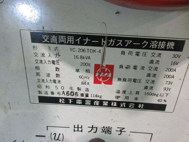 ○,松下,交直両用TIG溶接機,200A,パナソニック,Panasonic,交流,直流,ダイヘン,DAIHEN,板金,車修理,板金,バイク,アルミ,単相,60Hz
