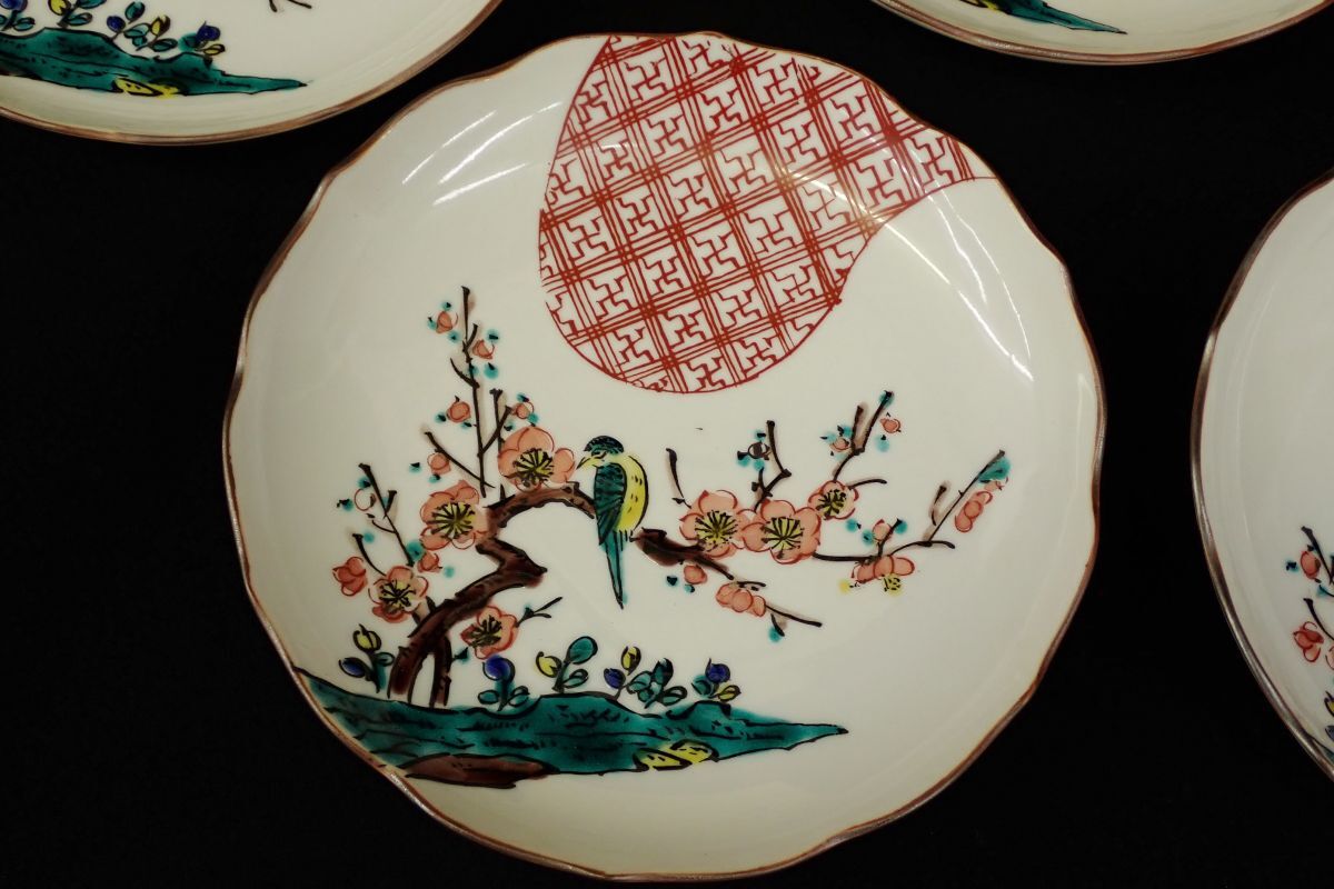◆未使用 九谷焼 彩光 皿揃5枚◆古九谷色絵風/消費税0円