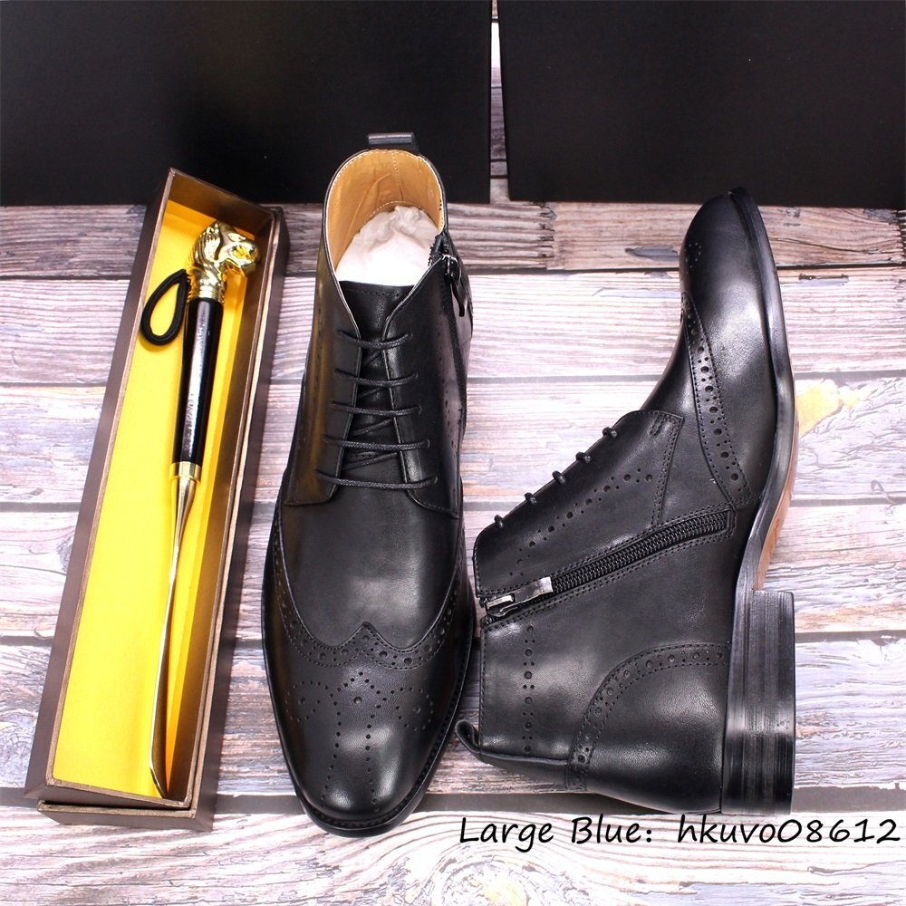 13万*超希少 マーティンブーツ 高級牛革 ショートブーツ 職人手作り 本革 レザーシューズ ビジネスシューズ メンズ 紳士靴 ブラック 24.5cm