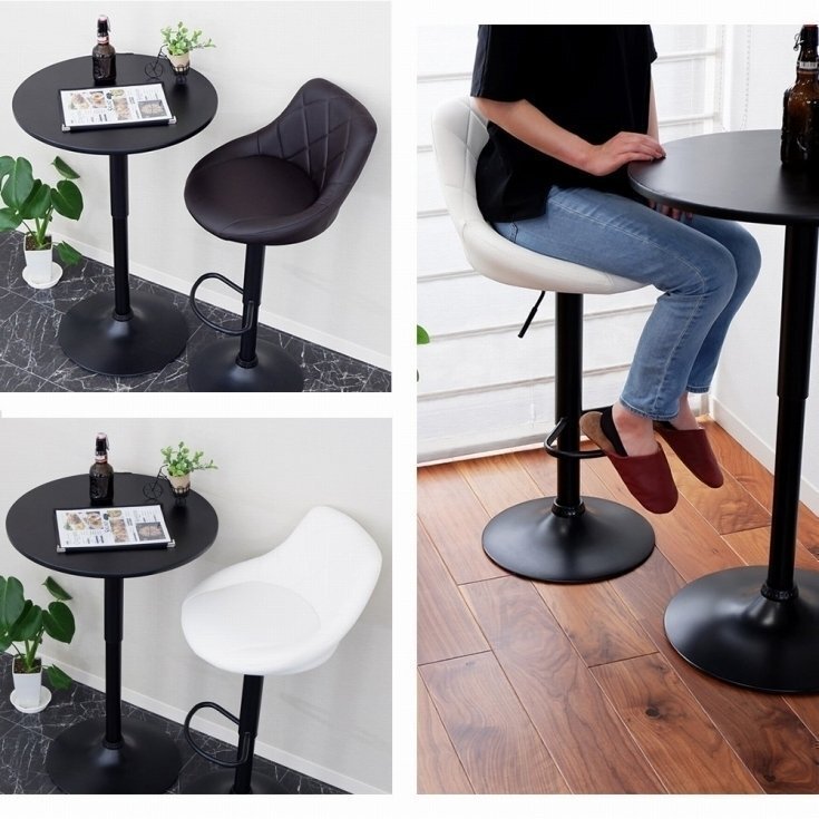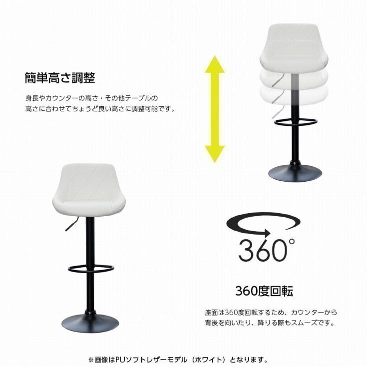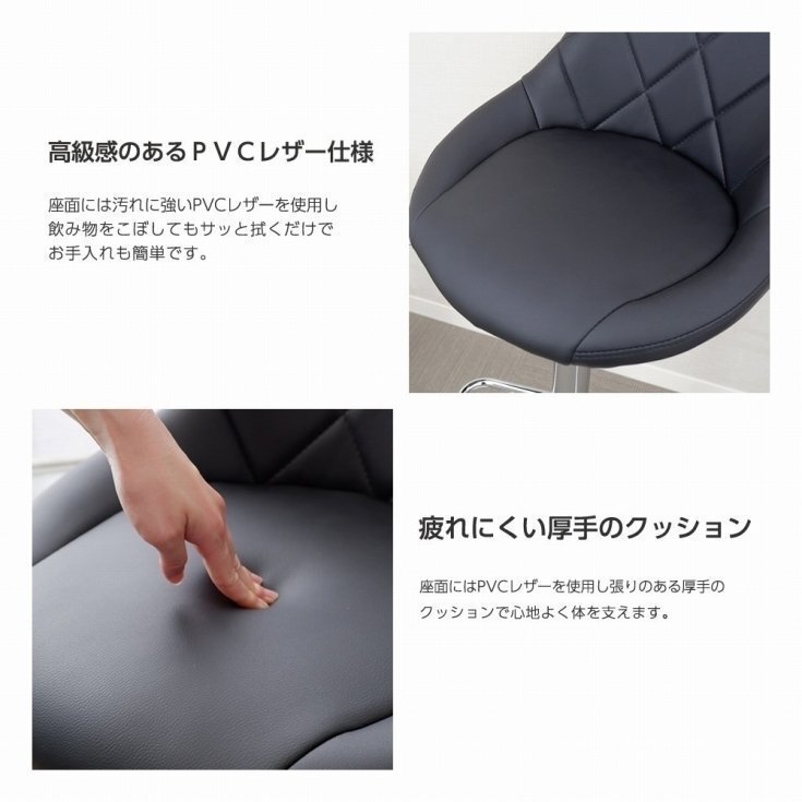 特長 | ・座面は360回転機構付き! ・包まれるような背もたれ付きのカウンターチェア。 ・クッション厚み70mmのふかふかカウンターチェア。 |