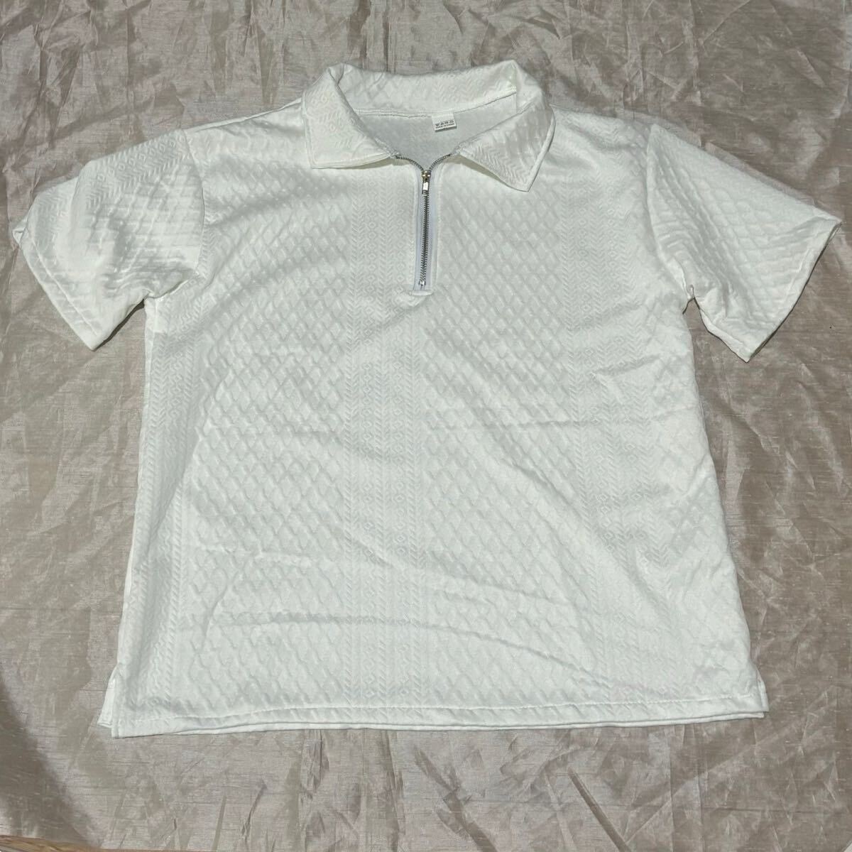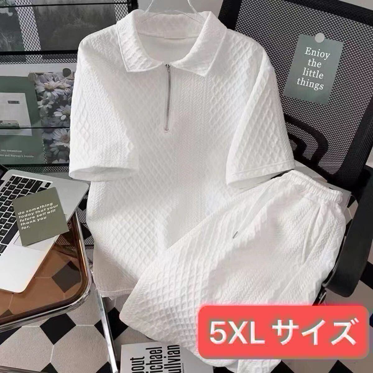 セットアップ 上下セット ルームウェア 部屋着 夏服 Tシャツ ハーフジップ 白 ホワイト 5XL
