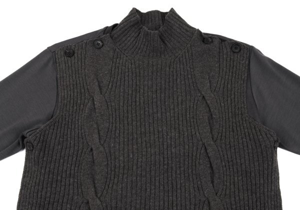 | ヨウジヤマモト プールオムYohji Yamamoto POUR HOMME ケーブルニット着脱ウールカットソー モカM |