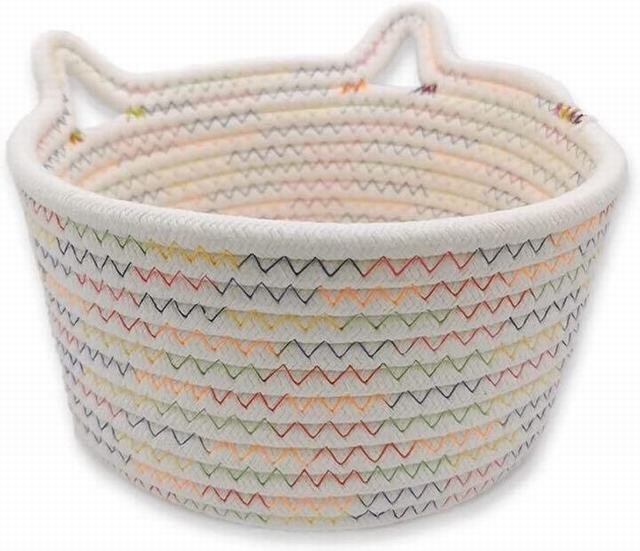 サイズ : 掲載サイズ表をご参照ください。 安全な天然素材-私たちの編まれたバスケットです。 化学物質を含まず、家庭での使用に安全な綿ロープで作られています。 小さなロープバスケットの寸法。 かわいい綿ロープバスケット バスケットは一流の綿ロープでできており、弾力性があり頑丈な形になっています。 やわらかい手触りで、肌を傷つけたり、衝突傷をつけたりすることなく、保育室用のベビーバスケット、棚バスケット、収納用デスクバスケットに最適です。 家庭での使用、特にペットや子供に安全です。 スタイリッシュなバスケットデザインです。 楕円形のバスケットは、モダンな外観と優れた技量を組み合わせており、ベビールーム、 ベッドルーム、ガールズルーム、女性用ルームなどの家の装飾に最適です。 この素敵な灰色のバスケットは、クリスマスや誕生日にも素敵なギフトの選択肢です。 かわいい猫の耳の形 収納バスケットは屋内で広く使用できます。キー、ルーズチェンジ、リング、コットンリール、ボタン、ガラスキャンドル、リモコン、フルーツ、キャンディー、化粧ブラシ、鉛筆、トイレタリー、ヘア用品などを保持するのに最適です。猫かごやペットかごとしてもお使いいただけます。 洗濯可能 この収納バスケットは、洗濯バッグと中性洗剤で洗濯機で洗うことができます。これにより、形が保たれ、擦り傷がなくなります。