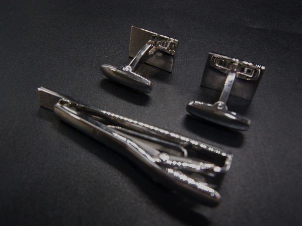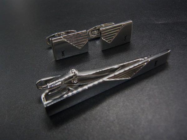■美品■ YVESSAINTLAURENT イヴサンローラン カフスボタン ネクタイピン アクセサリー 2点セット メンズ シルバー系 DI7847