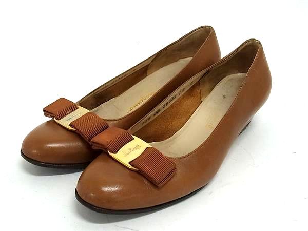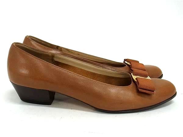 Salvatore Ferragamo フェラガモ ヴァラリボン レザー ヒール パンプス 表記サイズ 6 (約23.0cm) 靴 シューズブラウン系 DK1094