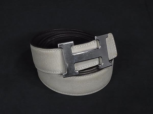 1円 HERMES エルメス コンスタンス ヴォーベロア×レザー リバーシブル シルバー金具 ベルト 表記サイズ 90 □I刻印 ベージュ系 FR6183