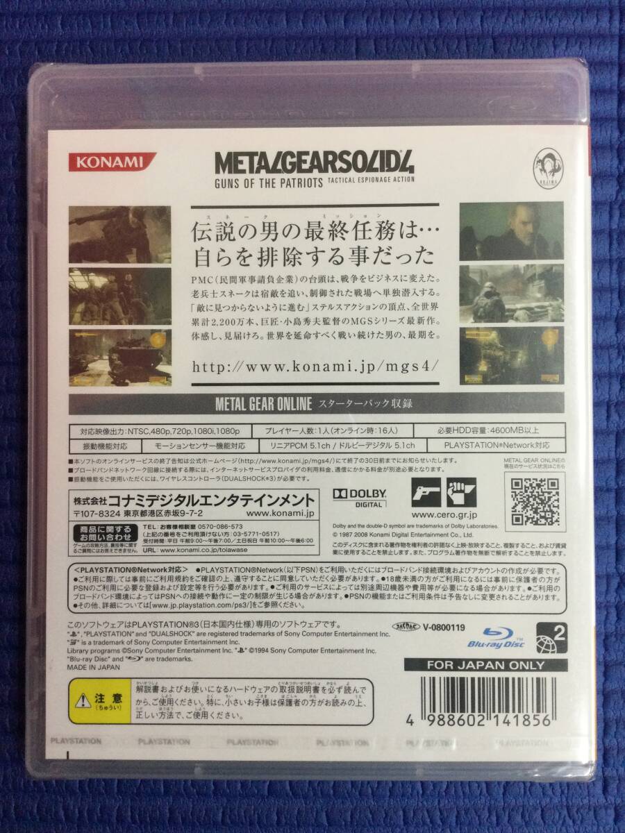 PS3ソフト「METAL GEAR SOLID 4 -GUNS OF THE PATRIOTS-」です。 こちらの商品はシュリンク付きの未開封品になります。 商品の詳細は画像をご確認下さい。 【商品状態】 ■商品は新品となります。 ■神経質な方や完璧な商品をお求めのお客様は入札をお控えください。 ■ばら売りはいたしませんのでご了承ください。 ■商品の画像につきましては、パソコン ディスプレイの環境や設定によっては商品のカラー等が実物と異なって表示されることもございます 。 ■その他、ご不明点などございましたらお気軽にご連絡お待ちしております。 ■注意事項をご一読頂きご了承上、ご入札願います。 |