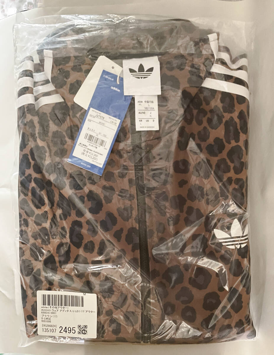 新品 未使用。2025年発売。アディダス オリジナルズ レオパード トラックジャケット。adidas Originals BRONZESTRATA JV7578 U LEO TT LEOPARDアディダス・ジャパン株式会社の国内正規品。一部のショップのみで限定発売されたため販売数が少なく、完売したため現在では入手困難なレアな商品です。◎存在感抜群のヒョウ柄デザイン◎胸元に刺繍のトレフォイル(三つ葉)のロゴ◎ジッパー付きサイドポケットx2●表記サイズ:XL●サイズ:胸囲:125cm、着丈:67cm、ゆき89.5cm※多少の誤差はご了承ください。●素材:ポリエステル70%、コットン30%●カラー:ブラウン●付属品:アディダス・ジャパン紙製タグ○掲載画像は、各自のデバイスの設定により色や素材感が若干異なって見える場合がありますのでご了承下さい。写真と説明でご不明な点はできるだけ質問にお答えしますので、思い描いていたイメージと違うといったお客様都合による返品は不可です。○すり替え防止のため、返品は一切受け付けません。