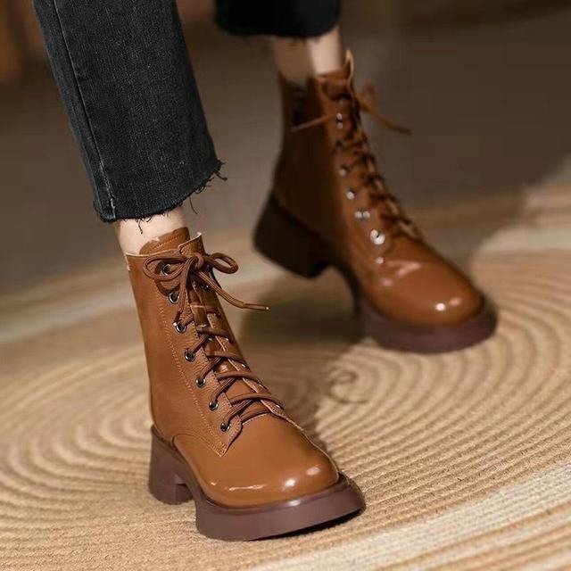 ワークブーツ レディース レディース靴 厚底 幅広 撥水 防滑ソール 太ヒール アウトドア 歩きやすい 通勤 通学 美脚 ブラウン23cm