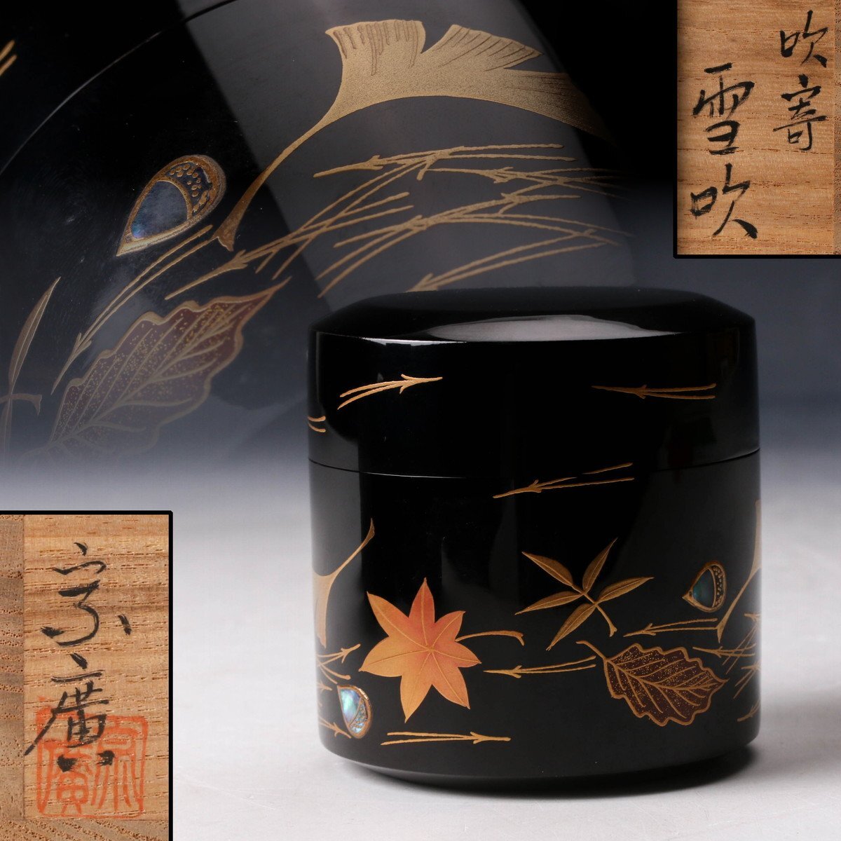 【佳香】道場宗廣 吹寄雪吹棗 螺鈿 共箱 茶道具 本物保証