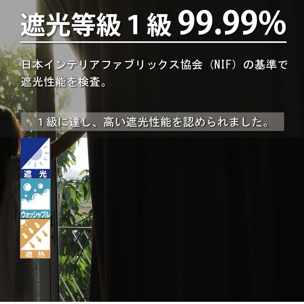1級遮光:250gsmポリエステル生地(三層構造)で仕上げた一級遮光カーテン、遮光率は99.99%以上、外からの光をほとんど通さなく、昼間でもぐっすり眠れます。ホームシアターを楽しんでいただき、室内の光が外に漏れることを防止し、外から部屋中の様子が見えなく、プライバシーをしっかりと守ります。一人暮らしの女性により安心感を与えます。(カーテンの遮光効果は色により若干差があるのでご理解の上、ご了承お願い致します。よりいい遮光効果を追求する方は、濃い色のカーテンをお勧め致します。)