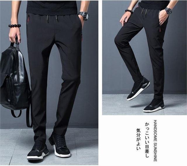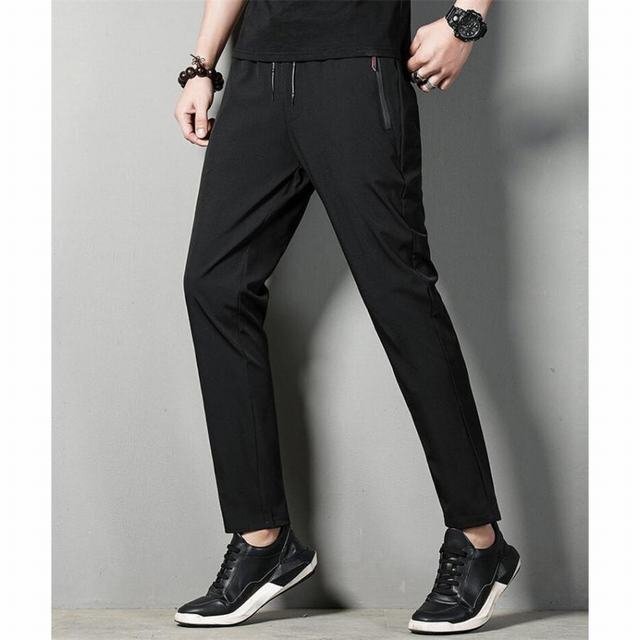 春 夏 秋 ゴルフパンツ カジュアル テーパード チノパン メンズ パンツ アイスシルクパンツ ロング丈 ブラック 2XL