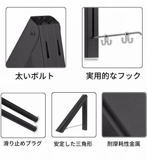 材質:アルミニウム合金製。 高品質の非腐食性アルミニウム合金の構造なので、頑丈で、軽量しながら耐久性も優れています。 サイズ: 掲載サイズ表をご参照ください。 省スペース: 開けやすく、折りたたむのも簡単です。 それを使わない時は、折り畳めばよいです。 非常に使いやすい,省スペースのデバイスです。 簡単に組み立て: 設置ガイドを参照にして、一人でも簡単に組み立てられます。 耐荷重: 25kgまでサポートすることができ、どこにいても "インスタントな服のクローゼット" を提供します。 部屋、寝室、リビング、浴室、オフィス、トイレ、ベランダなどの場所で服を掛けることができます。強力糊で設置する場合は荷重力が下げる可能性がございます。ご了承ください。
